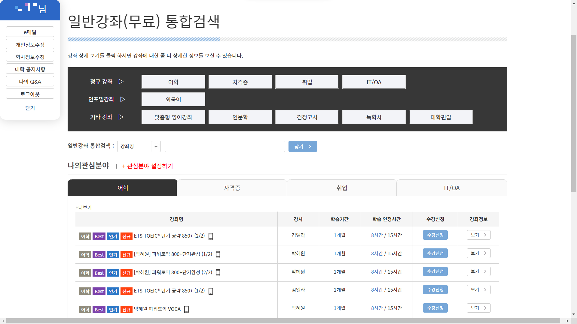 이미 대졸자인지라 학위강좌는 듣지 못하니 무료 일반강좌 기준으로 설명함.