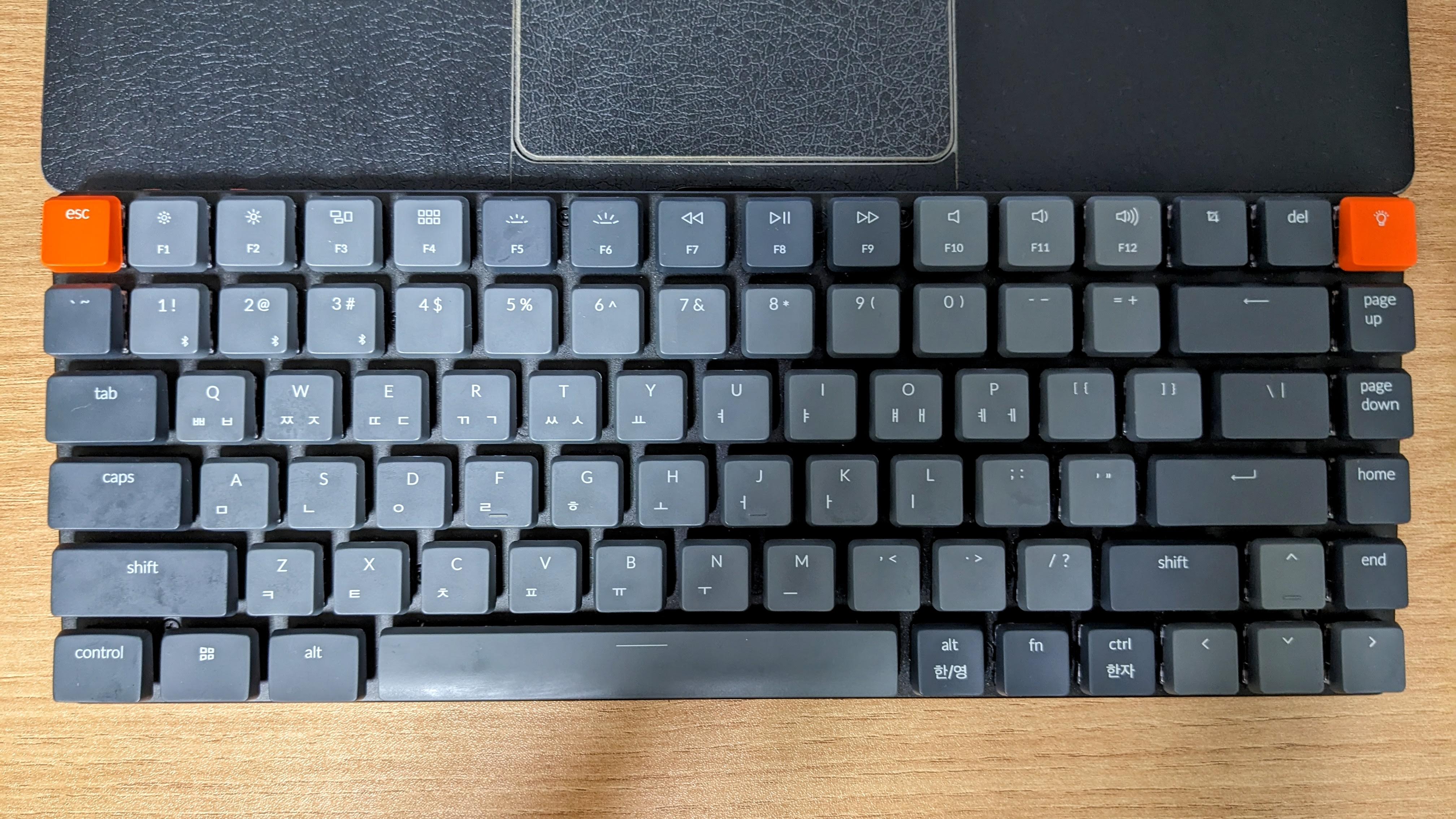 esc키와 백라이트키는 눈에 확 띄는 주황색으로 아주 강렬한 포인트를 남겨주는데, 개인적으로는 이런 디자인을 매우 좋아하지만 그렇지 않다면 여분으로 제공하는 회색 키캡으로 교체해서 사용하면 된다.