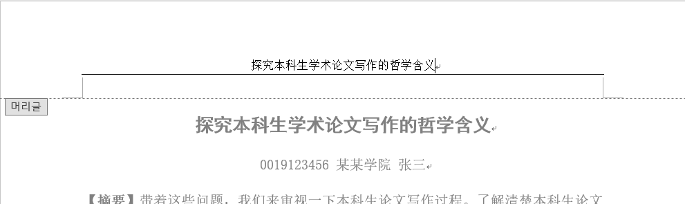 머리글에는 일반적으로 논문의 제목을 적는다. 안 적으면 뭔가 묘하게 허전해서...