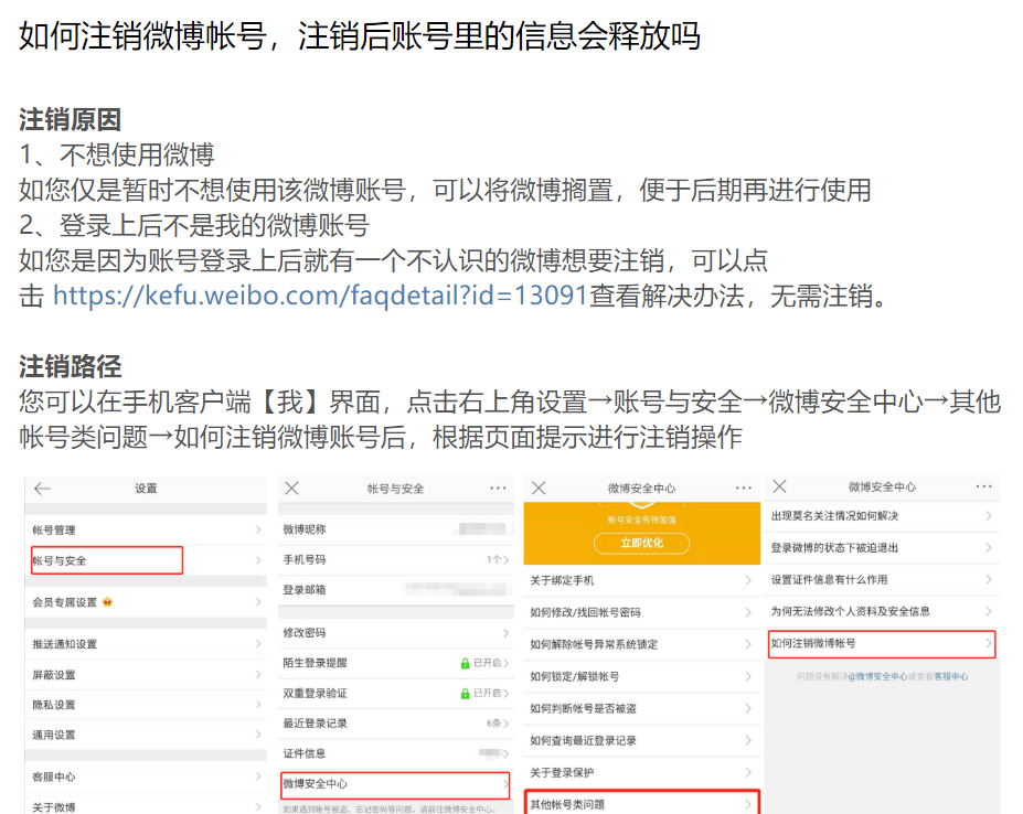 그리고 저기 네번째 如何注销微博账号(웨이보 계정 탈퇴는 어떻게 하나요)를 누른다.