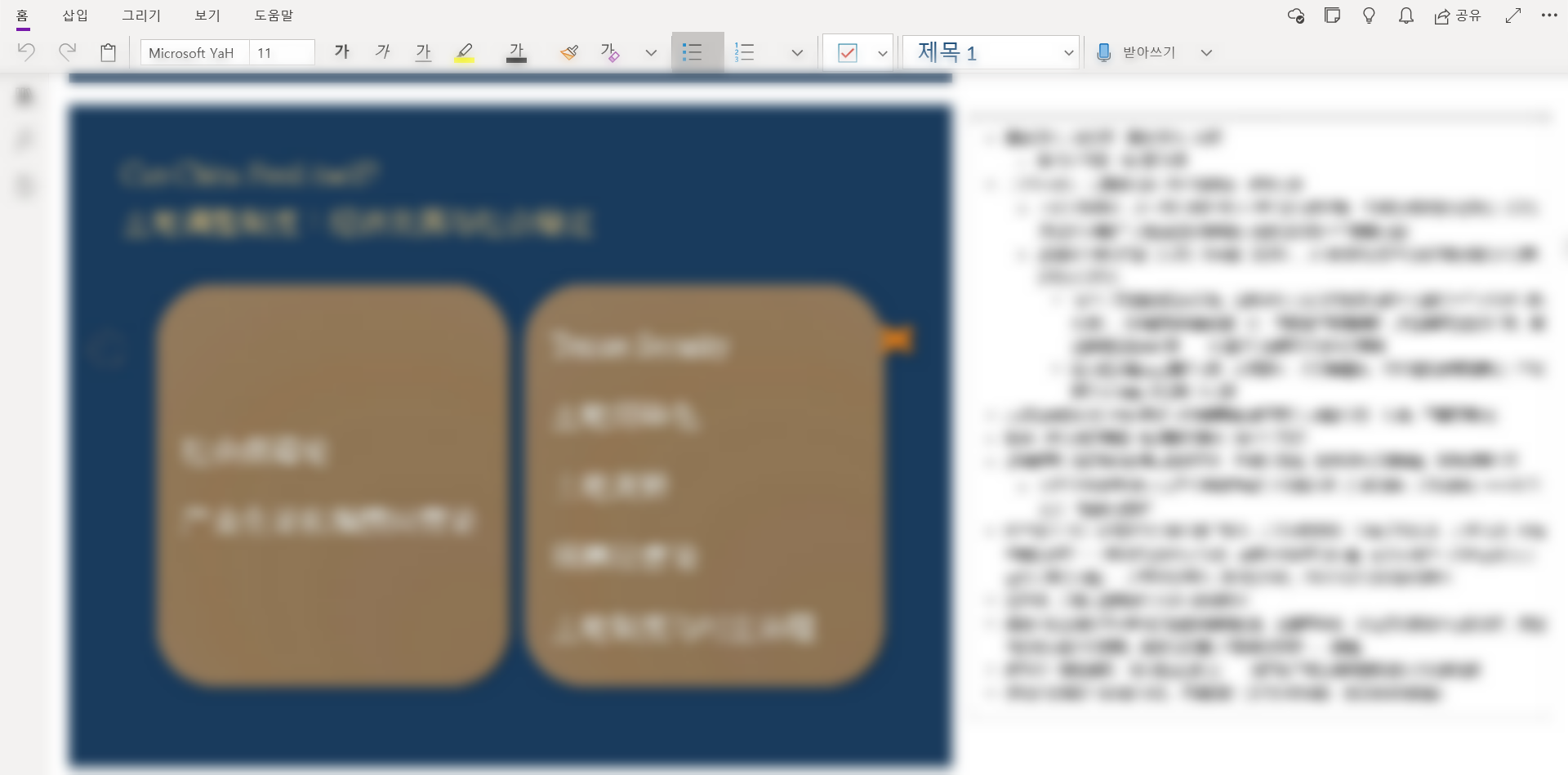 대학생활이나 강의 진행방식에 대해 아무것도 모르던 1학년 1학기때는 원노트가 강의 필기용으로 적합하다는 얘기만 듣고 원노트에다가 주구장창 교수님이 하신 얘기와 피피티 내용 토씨 하나 틀리지 않고 타이핑으로 베끼는 방식으로 필기를 했다.