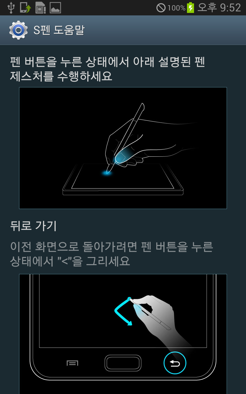 왼쪽 사진은 노트1의 S펜 관련 옵션, 오른쪽은 노트 8의 옵션인데, 아무래도 초기 노트 시리즈 제품이다 보니 S펜 관련 기능이 굉장히... 간단해 보인다. 주로 사용하는 손 (왼손, 오른손의 미세한 각도 차이 때문에) 설정, 호버링 아이콘 표시와 제스처 안내가 끝. 에어 커맨드라던가 S펜 분리 인식이라던가는 모두 노트1 이후에 등장한 기능들.