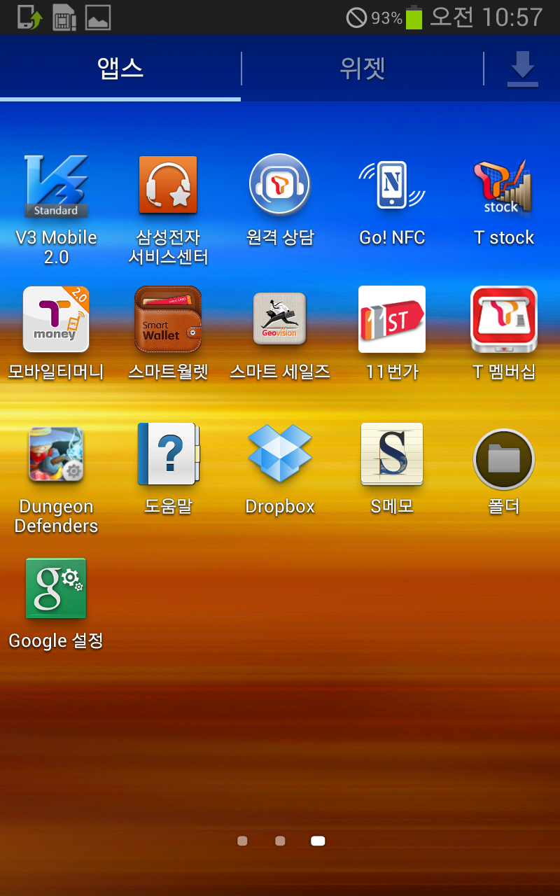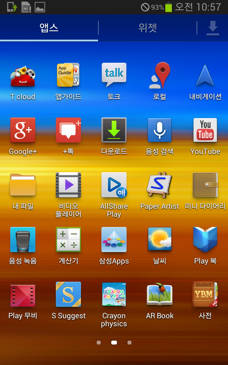 위 사진은 초기화하고 하나도 건드리지 않은 상태의 앱 서랍이다. T월드부터 멜론에 11번가까지 정말 별의별 SK계열 앱들이 다 설치돼있는 모습. 물론 실사용하면서 필요 없는 앱들은 "사용 안 함" 상태로 만들어버릴 수 있지만 저장공간 잡아먹는 건 뭐 마찬가지라... 오죽하면 그때 안드로이드 유저들은 시스템 내장 앱 지우려고 루팅을 했을까.