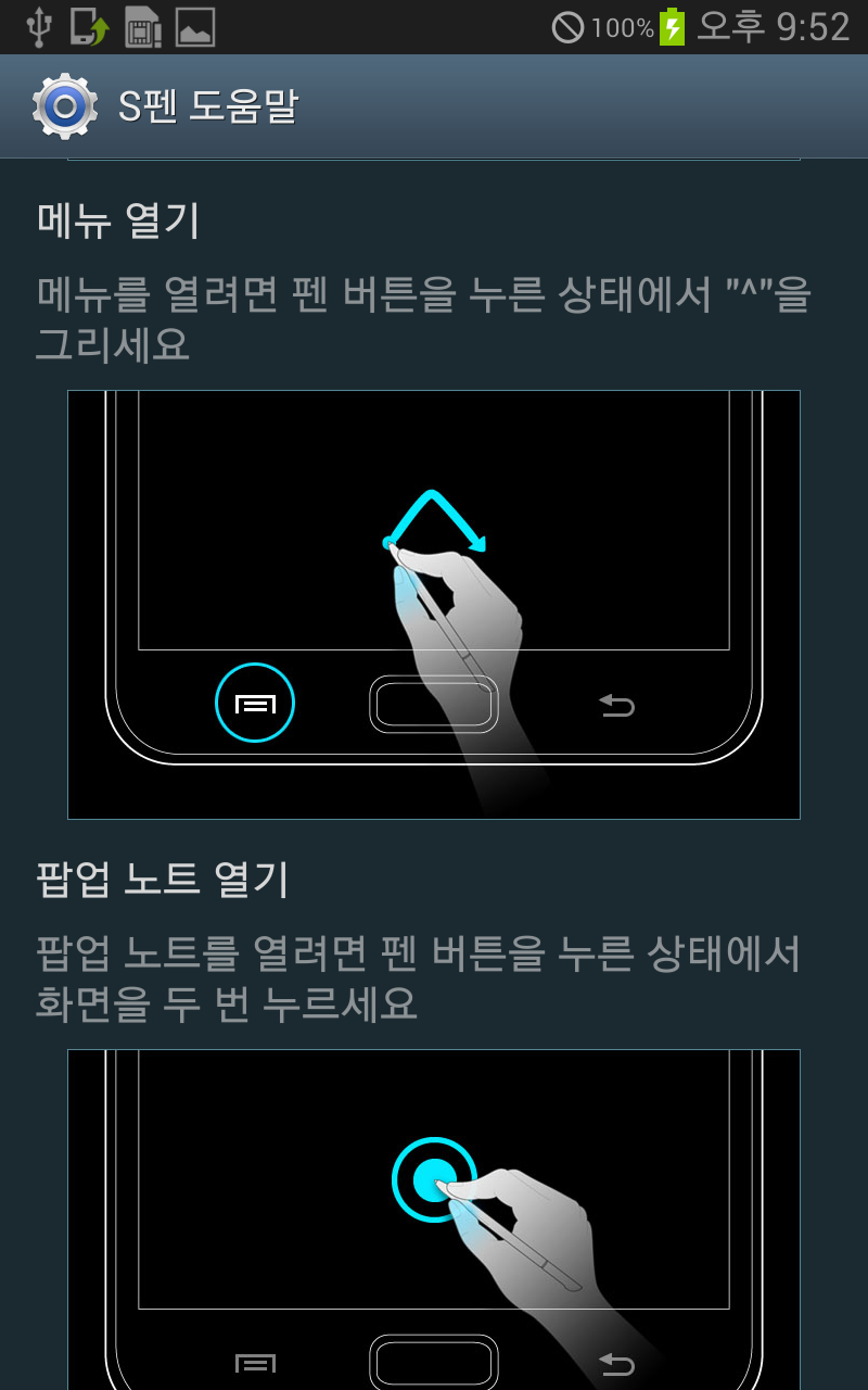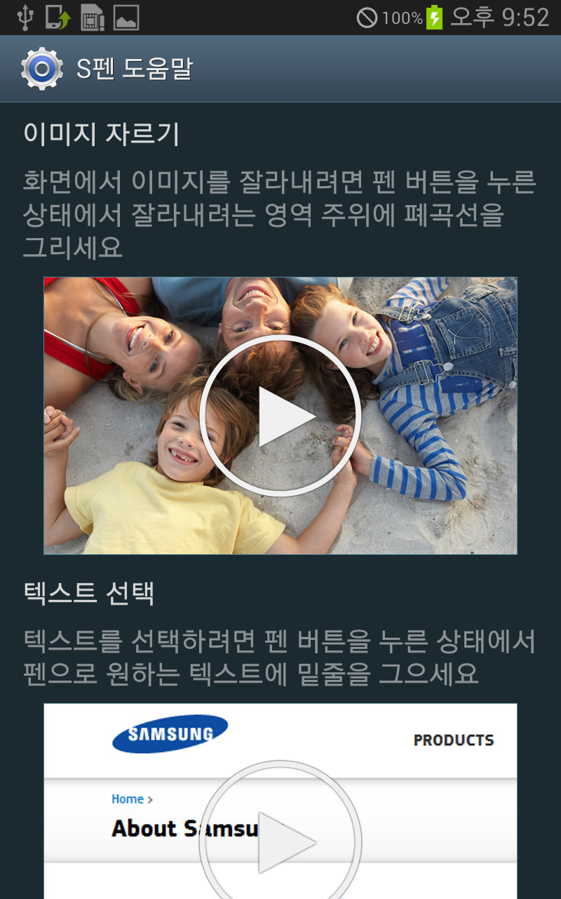 그래도 일부 기능들은 "이게 10년 전에도 있었던 기능이라고?"라는 감탄이 나올 정도였는데, 예를 들면 버튼 누른 상태에서 화면 더블 클릭으로 팝업 노트 열기 기능은 현재 갤럭시탭 S7에도 있는 기능이고, 이미지를 자르거나 텍스트를 선택하는 기능은 스마트 셀렉트 기능의 선조 격이라고 할 수 있겠다.