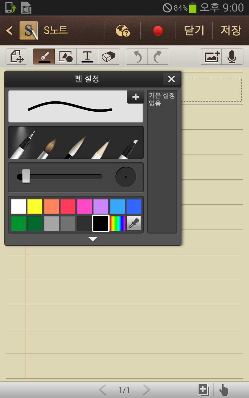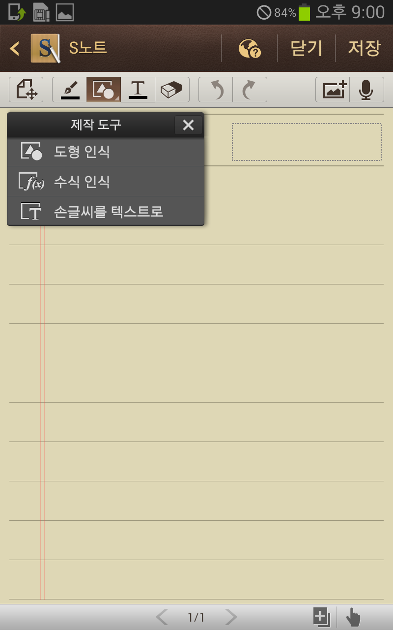 현 삼성 노트의 전신 S노트의 인터페이스. 비록 최신 버전의 삼성 노트에 비하면 기능이 초라한 느낌이 없잖아 있지만, 나름 다양한 펜 종류나 도형 인식, 텍스트 인식 등 기본적인 기능은 충실한 모습이다.