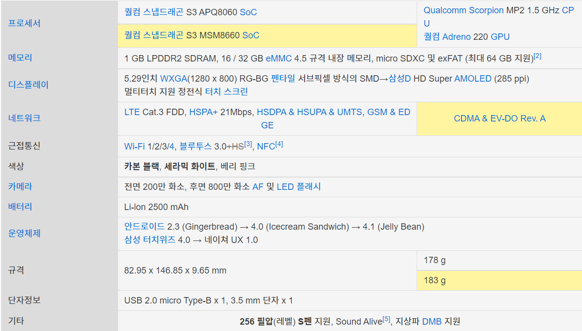 또한 갤럭시 S2 LTE, 옵티머스 LTE와 비슷한 시기에 출시된 초창기 4G 지원 스마트폰이기도 하다.