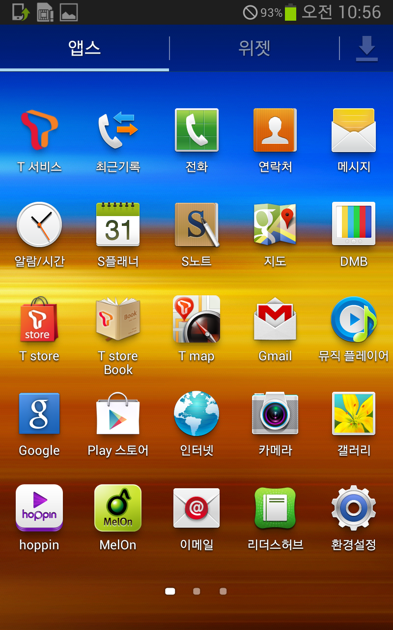 위 사진은 초기화하고 하나도 건드리지 않은 상태의 앱 서랍이다. T월드부터 멜론에 11번가까지 정말 별의별 SK계열 앱들이 다 설치돼있는 모습. 물론 실사용하면서 필요 없는 앱들은 "사용 안 함" 상태로 만들어버릴 수 있지만 저장공간 잡아먹는 건 뭐 마찬가지라... 오죽하면 그때 안드로이드 유저들은 시스템 내장 앱 지우려고 루팅을 했을까.