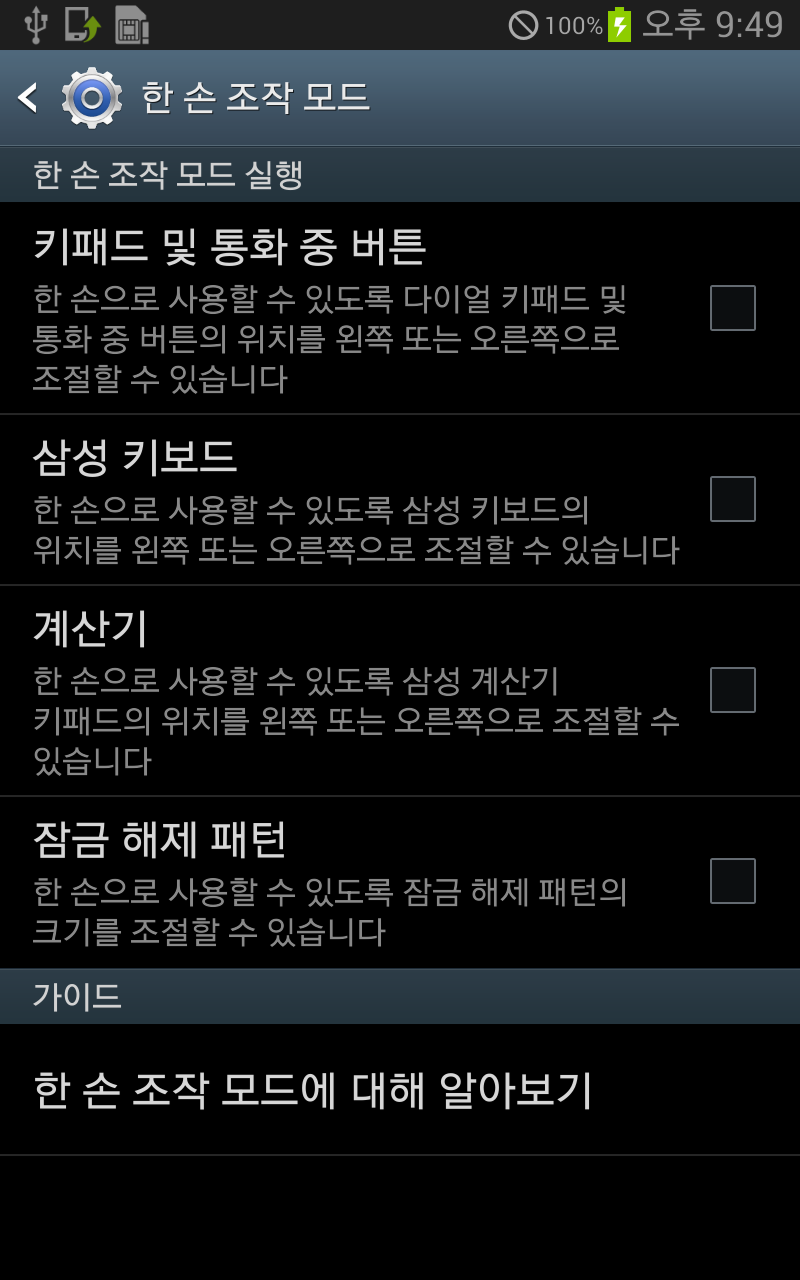 화면은 물론 크기 자체가 한 손에 쥐어지지 않는 큰 스마트폰이다 보니 한 손 조작 모드라는 게 아마 노트1에서 처음 등장했던 것으로 기억한다.