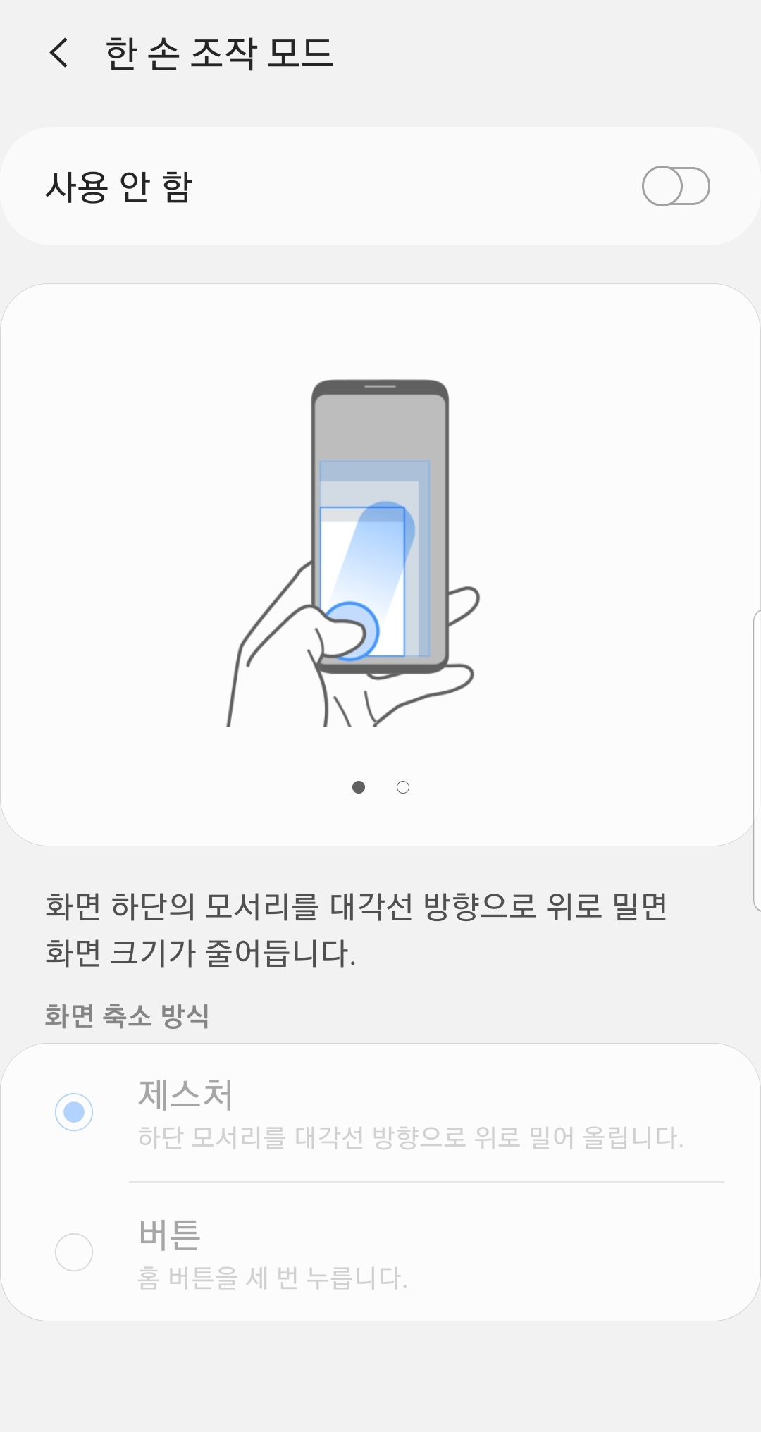 다만 시스템 내장 앱의 일부 기능에만 제한적이게 적용이 되기 때문에 완벽한 한 손 모드라고 하기에는 다소 애매했는데, 추후 이 기능은 아예 화면 크기 자체가 축소되는 기능으로 발전한다.