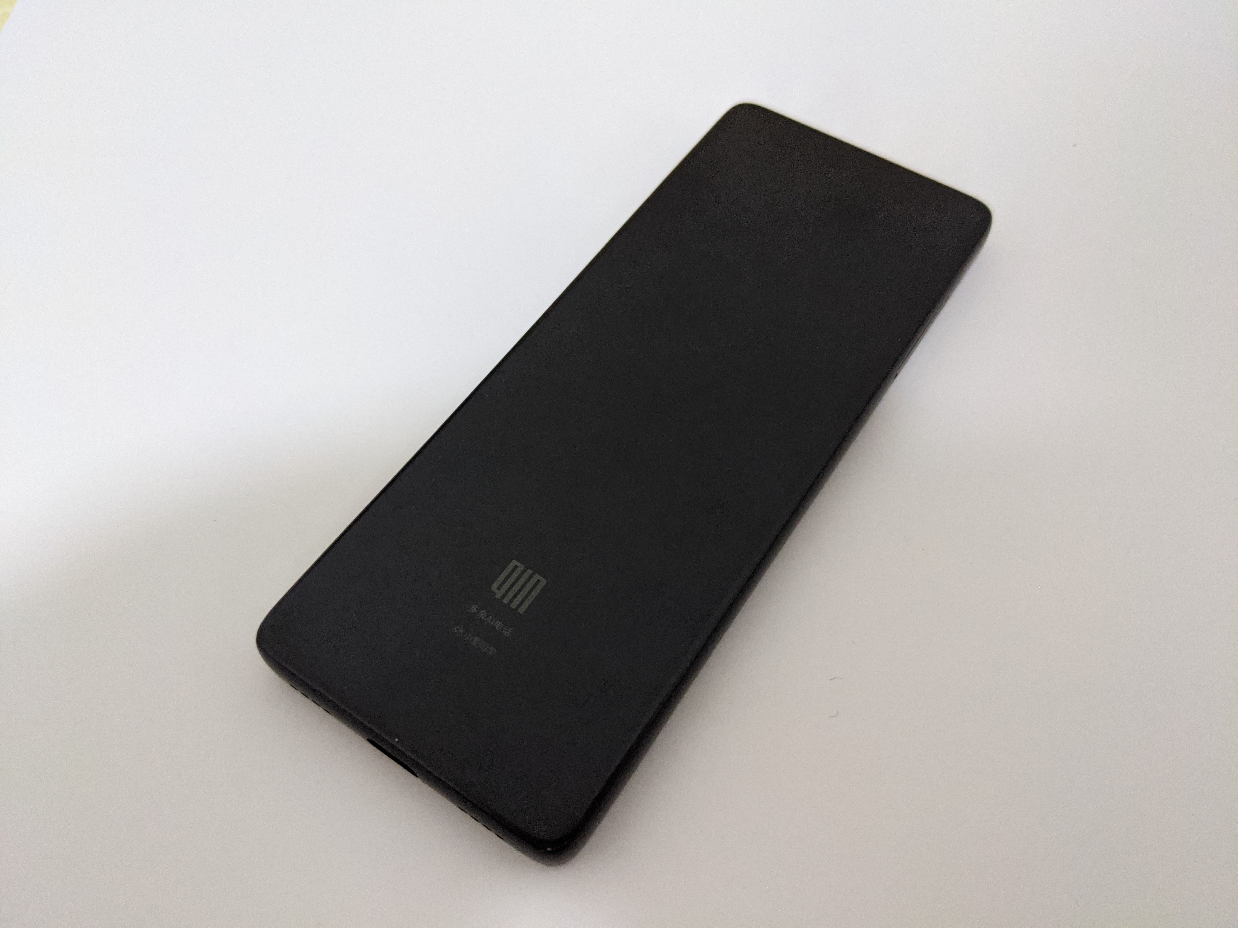 뒷면에는 아무것도 없이 Qin 로고와 AI를 강조하기 위한 多亲AI电话(뚜어친 AI전화), 小爱同学(샤오미에서 만든 샤오아이라는 음성인식 비서)라는 문구밖에 없다. 카메라는 탑재되있지 않다.