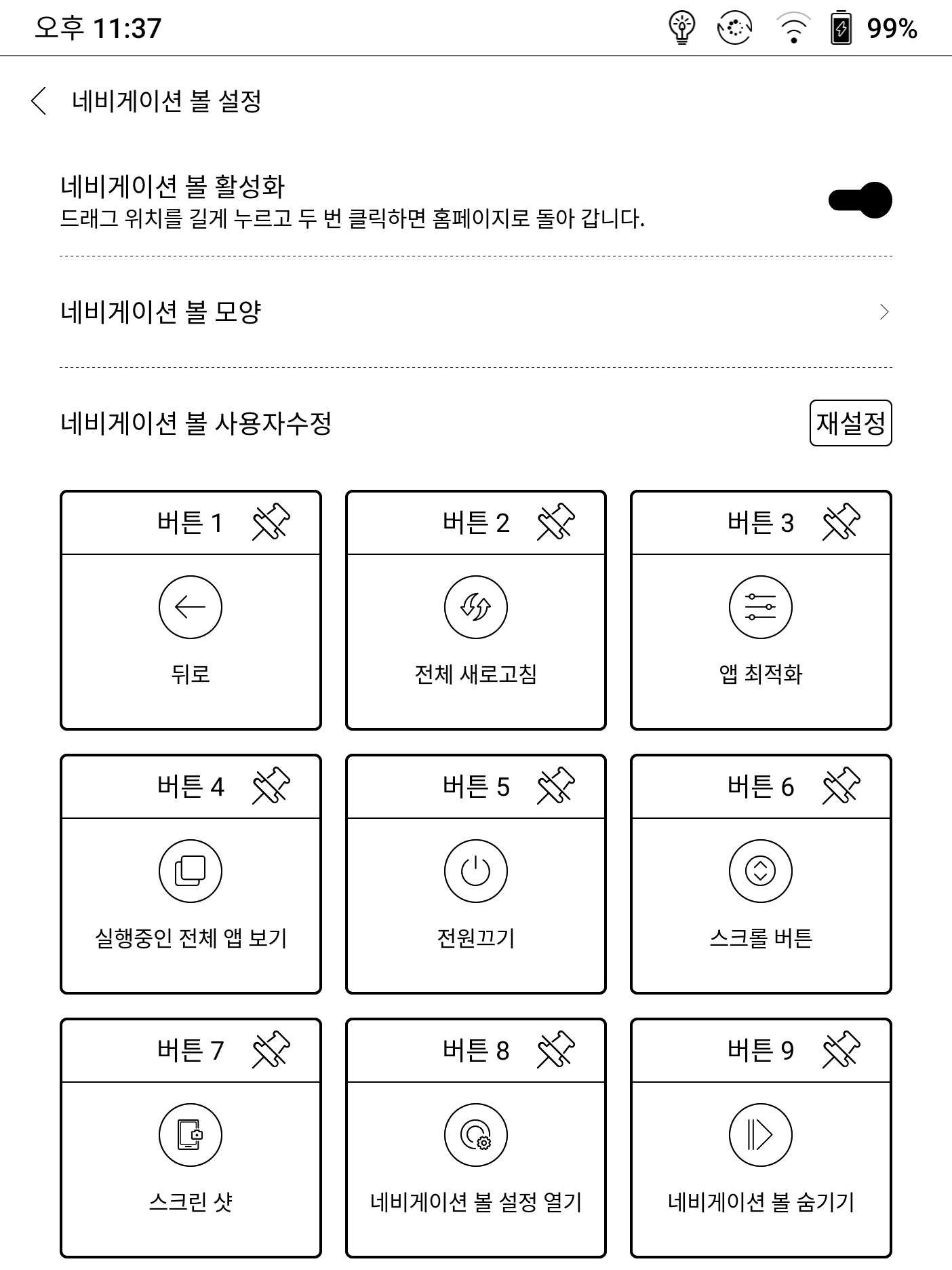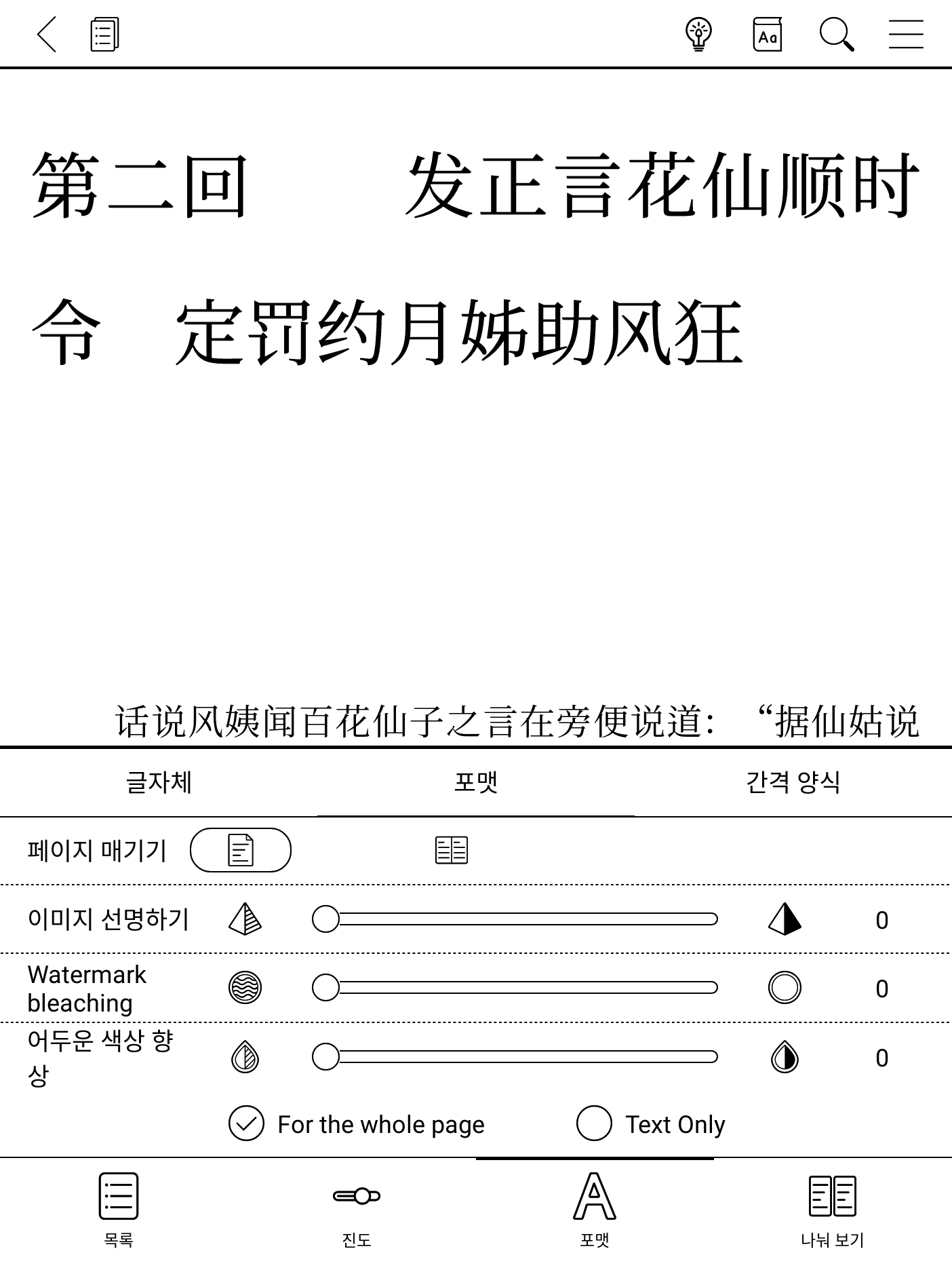 다만 (2번째 언급이지만) e잉크에 맞춰서 제작된 앱은 아닌 만큼 페이지 관련 설정 버튼들이 연하게 보인다는 차이가 있긴 했다. 사용하는데 지장이 있는건 전혀 아니지만.