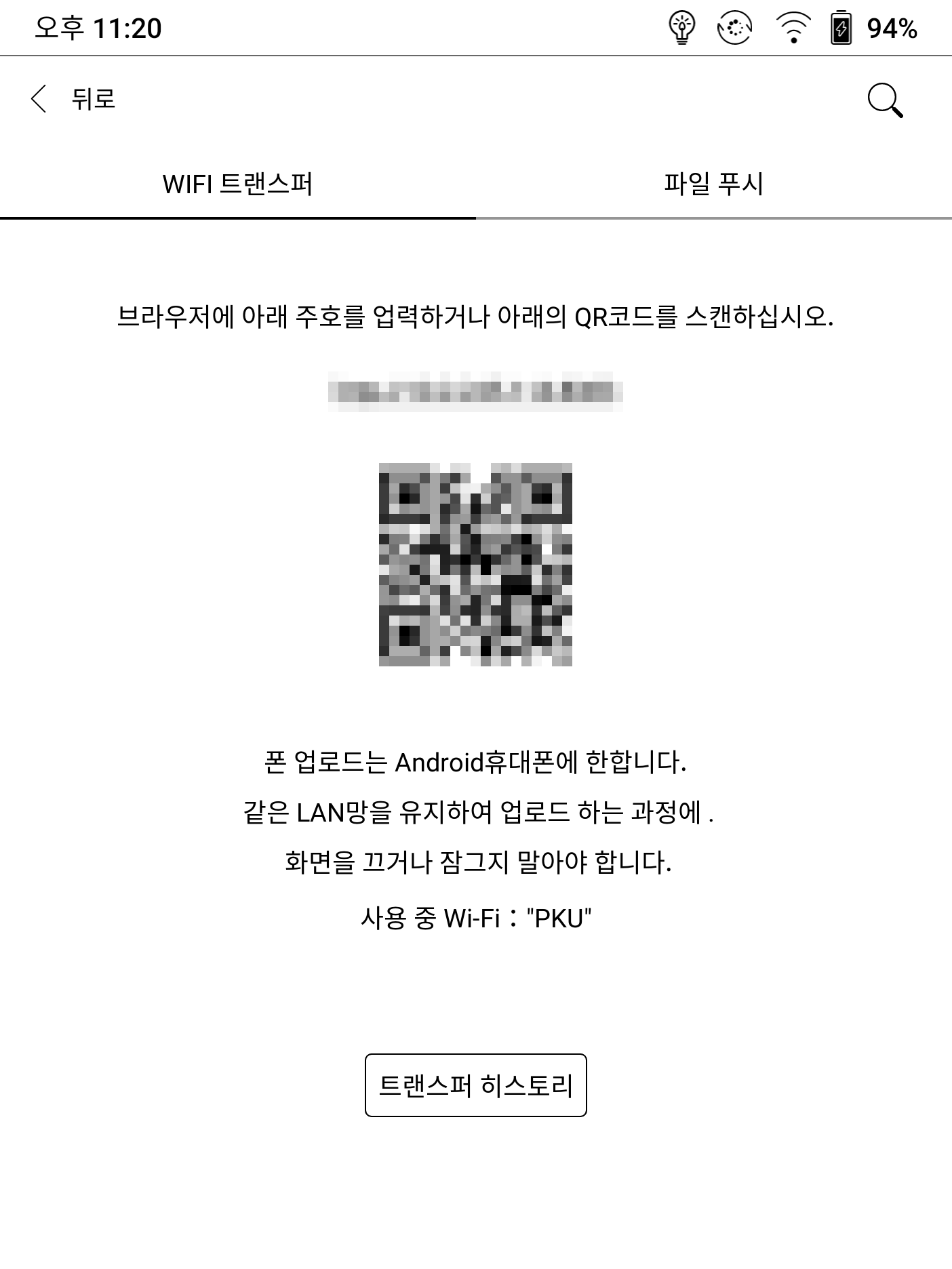 파일을 저장하는 방법은 usb케이블을 통해 컴퓨터에서 유선으로 전송하는 구시대적인 방식은 물론, Wi-Fi다이렉트나 Boox 파일 푸시 플랫폼을 통해 무선으로 전송하는 방법이 있다.