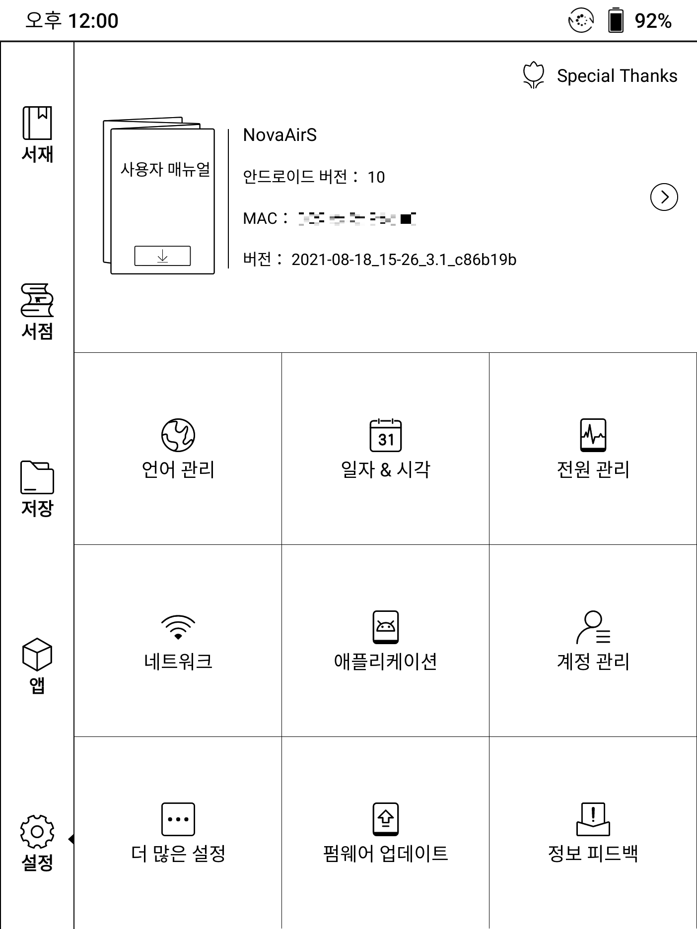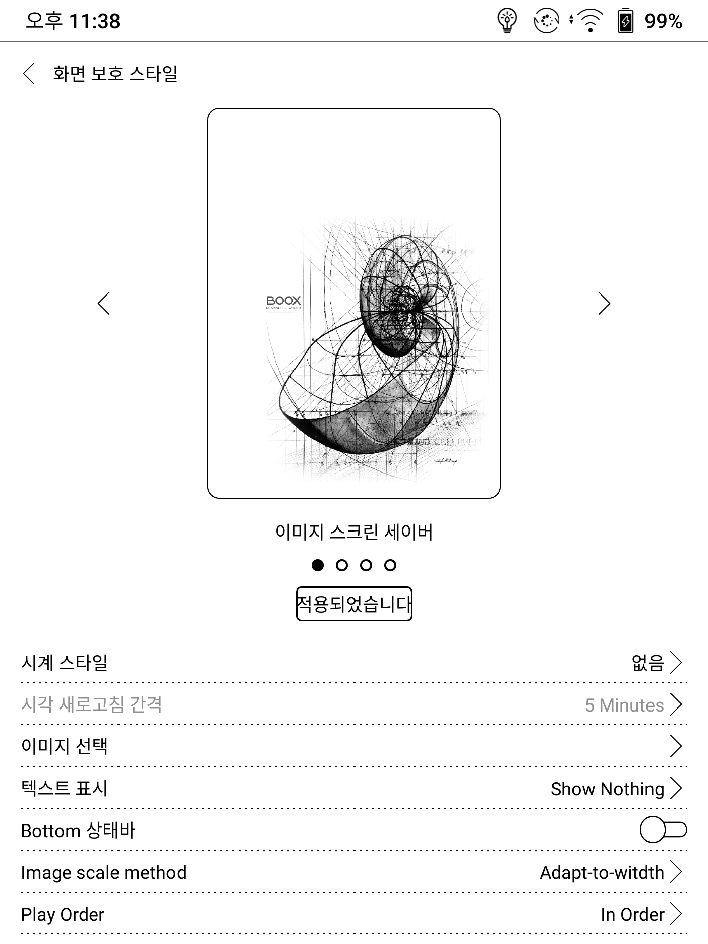 이북이나 문서 읽는 기능 외에, 구매 시 참고해볼만한 사소한 기능과 설정들을 몇가지 골라 소개해보고자 한다.