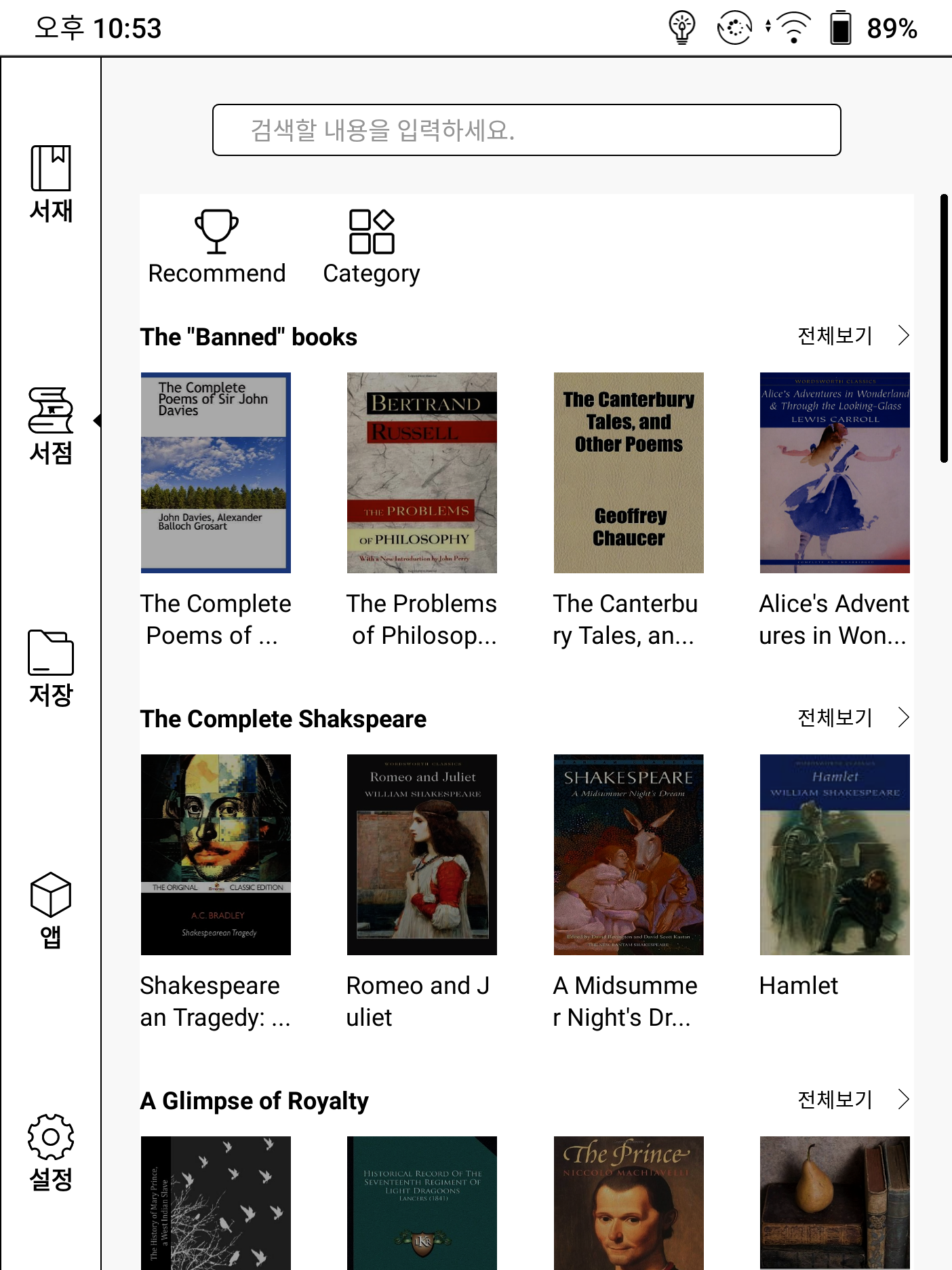 (위 사진의 문서들은 내가 다운받은게 아니고, 이북리더기를 구입하면 기본으로 증정(?)해주는 저작권이 만료된 고전 서적들이다.)