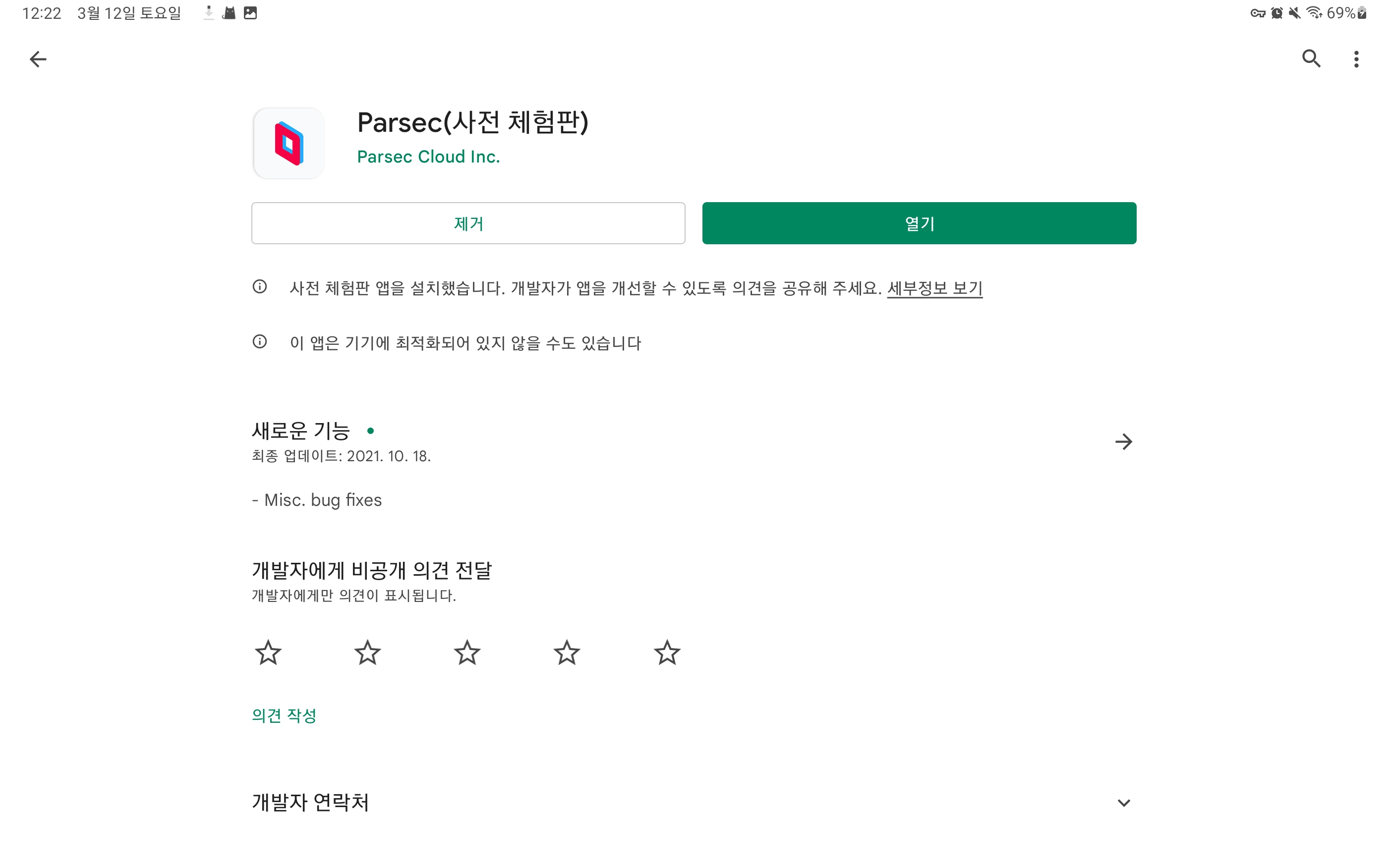 태블릿에서의 세팅은 더 간단하다. 플레이스토어에 들어가 Parsec을 검색해 설치해주고, 같은 계정으로 로그인하면 끝.