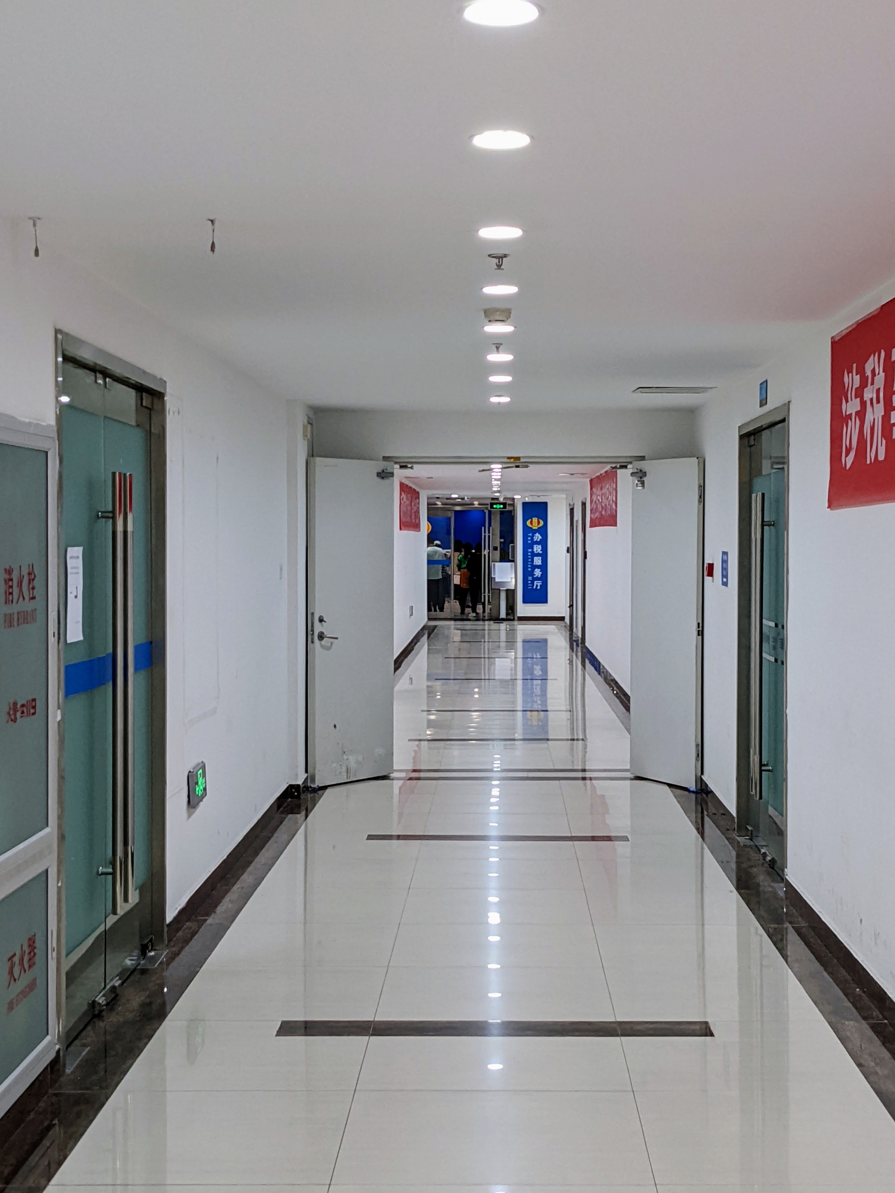 2층으로 올라온 다음 办税服务厅 화살표를 따라가면, 저 멀리 사람들이 바글바글해 보이는 사무실이 보인다.