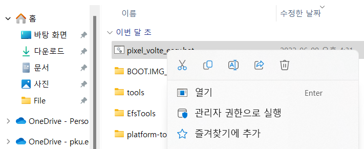여기서 pixel_volte_easy 압축파일을 풀어주고,