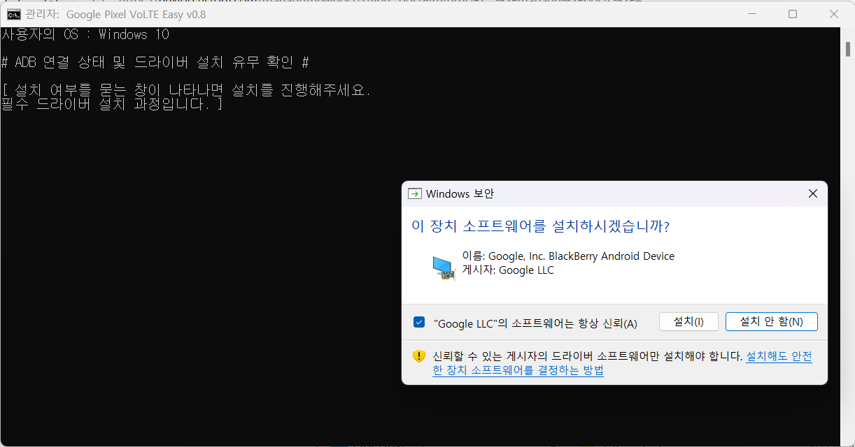 실행하면 2개의 드라이버를 설치하는 창이 뜨는데 설치를 눌러준다.