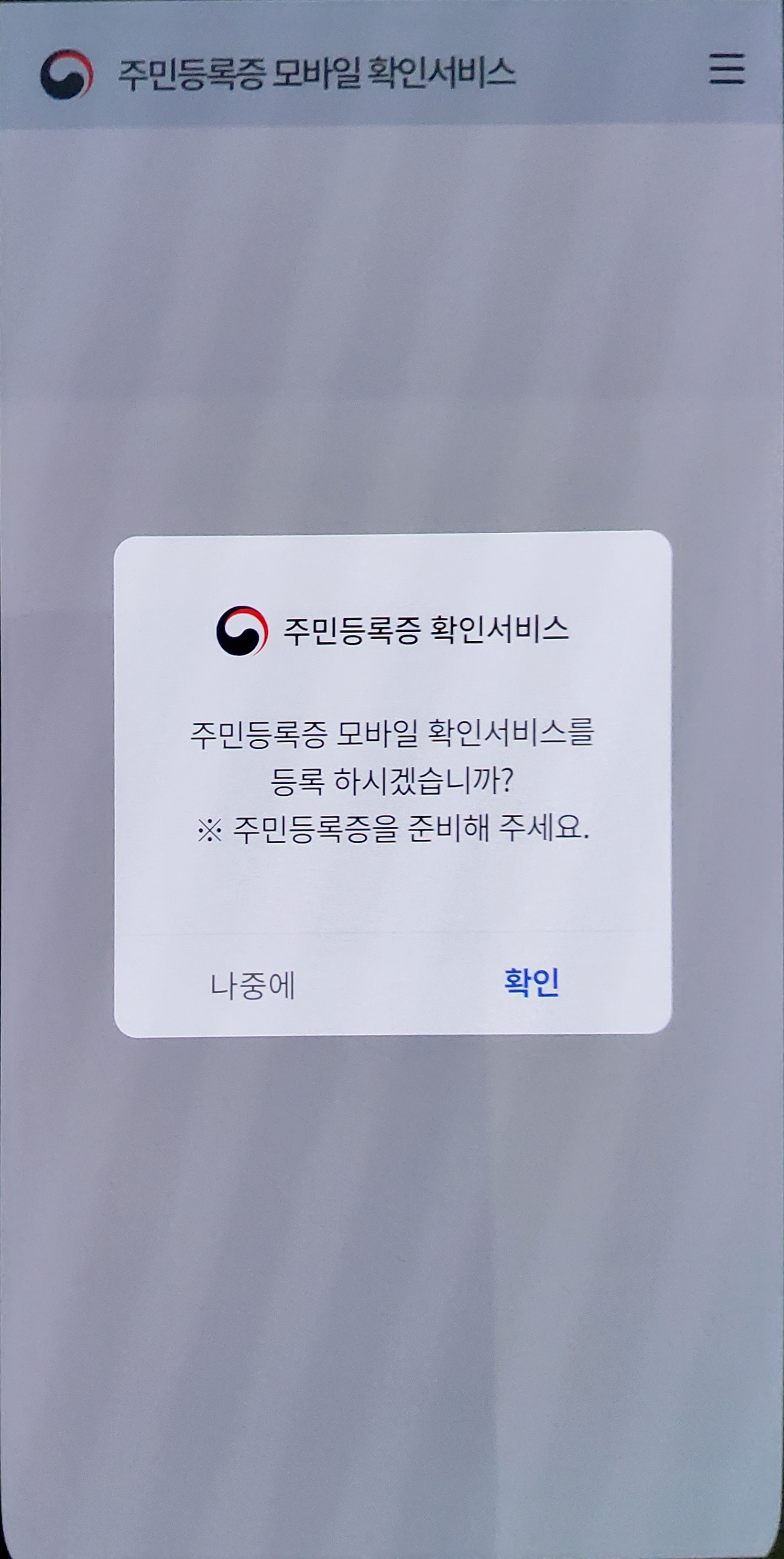 모바일 주민등록증은 정부24앱 인증서 로그인 (아이디+비번은 불가능) 후 홈페이지 "주민등록증 모바일 확인서비스" 창에서 등록이 가능하다. 등록 과정에서 주민등록증 발급일자를 확인하는 부분이 있으니 미리 주민등록증을 준비해준다.