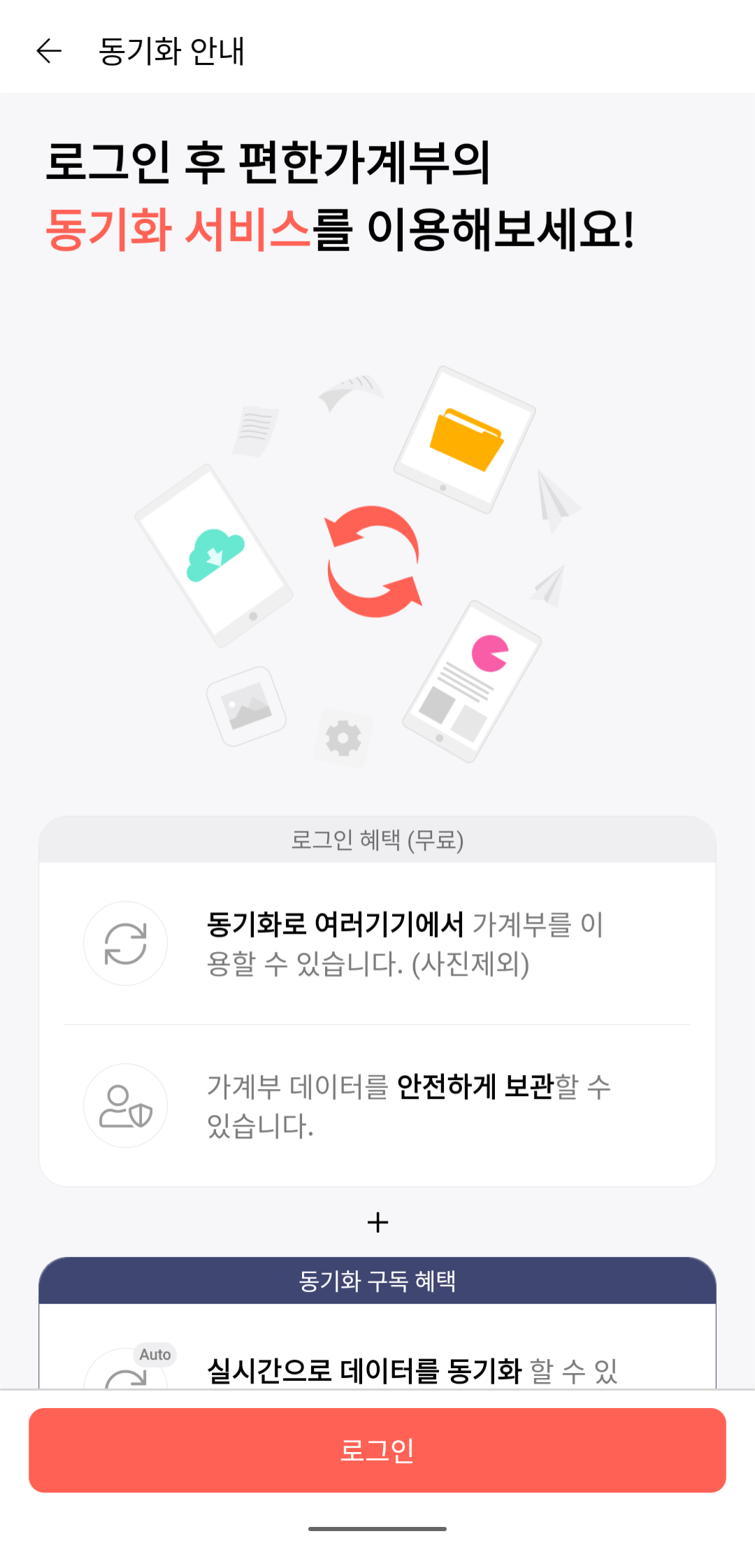 무료로도 사용이 가능한 기능이지만, 수동으로 동기화해줘야하고 (그냥 가계부 홈화면에서 새로고침하듯이 위에서 아래로 잡아당기면 되긴 하지만) 동기화가 끝날때마다 광고가 뜬다는 불편함이 있어, 사용해보고 만족스럽다면 구독결제를 해서 써보는걸 추천한다.