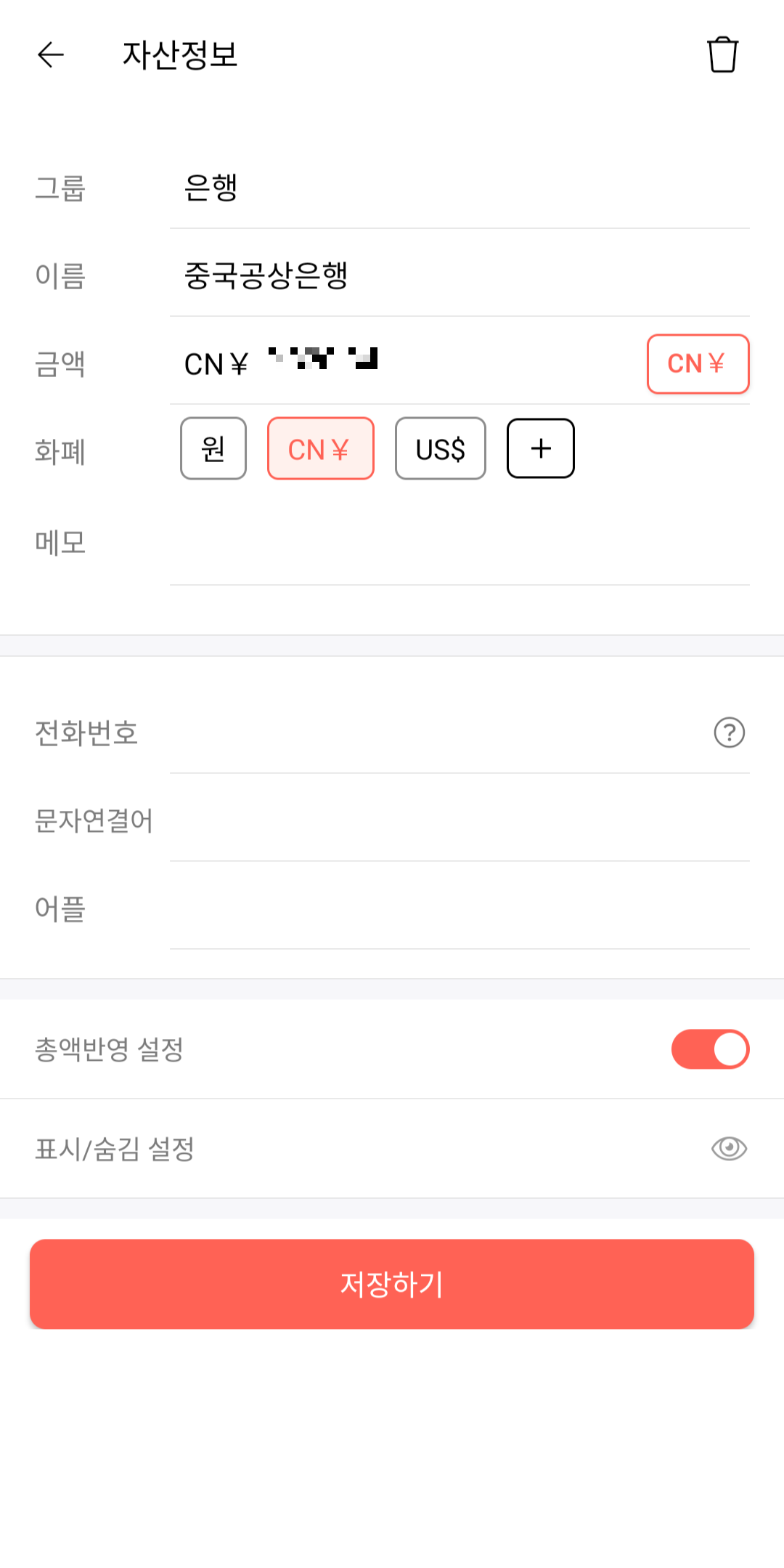자산 종류 설정에 들어가면 사용하는 화폐를 자유롭게 설정할 수 있고, 만약 장기 해외체류로 인해 원화가 아닌 외화를 더 주로 쓴다면 주 화폐를 외화로 변경하는것 역시 가능하다.