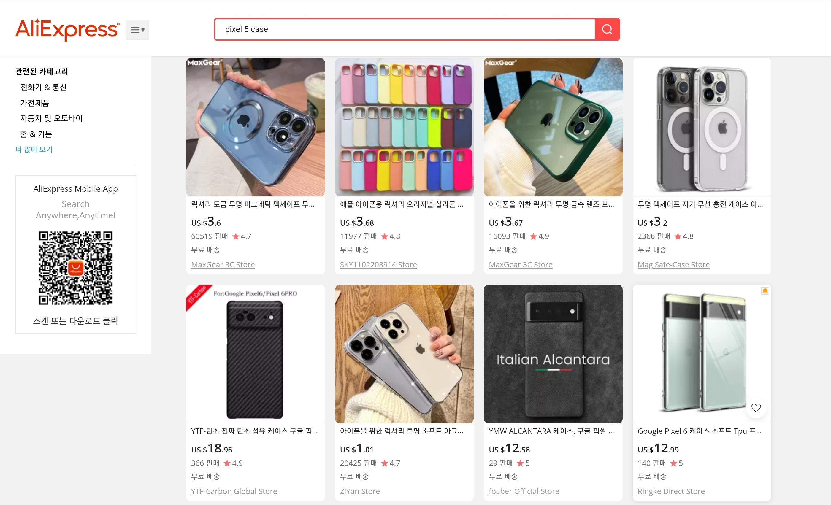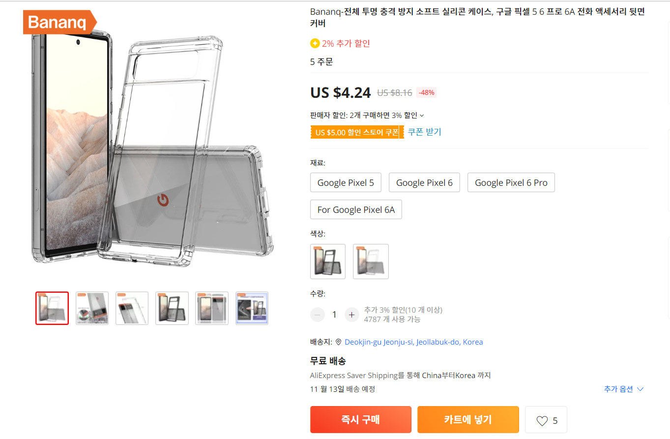사이트를 통째로 구글 번역기에 집어넣은듯 허접한 한국어 번역과 분명 Pixel 5라고 버젓히 검색했는데 아이폰이 나올 정도로 허접한 검색 엔진을 보고 처음에는 "이게 도대체 어떻게 지금까지 멀쩡히 서비스를 한거지?" 란 생각이 들었지만, 무수히도 많은 선택지와 (기분탓인지는 모르겠지만 어찌 타오바오보다 다양한것 같았다) 상상 이상으로 저렴한 가격 (심지어 국제배송이 무료) 을 보고 곧바로 납득이 되었다.