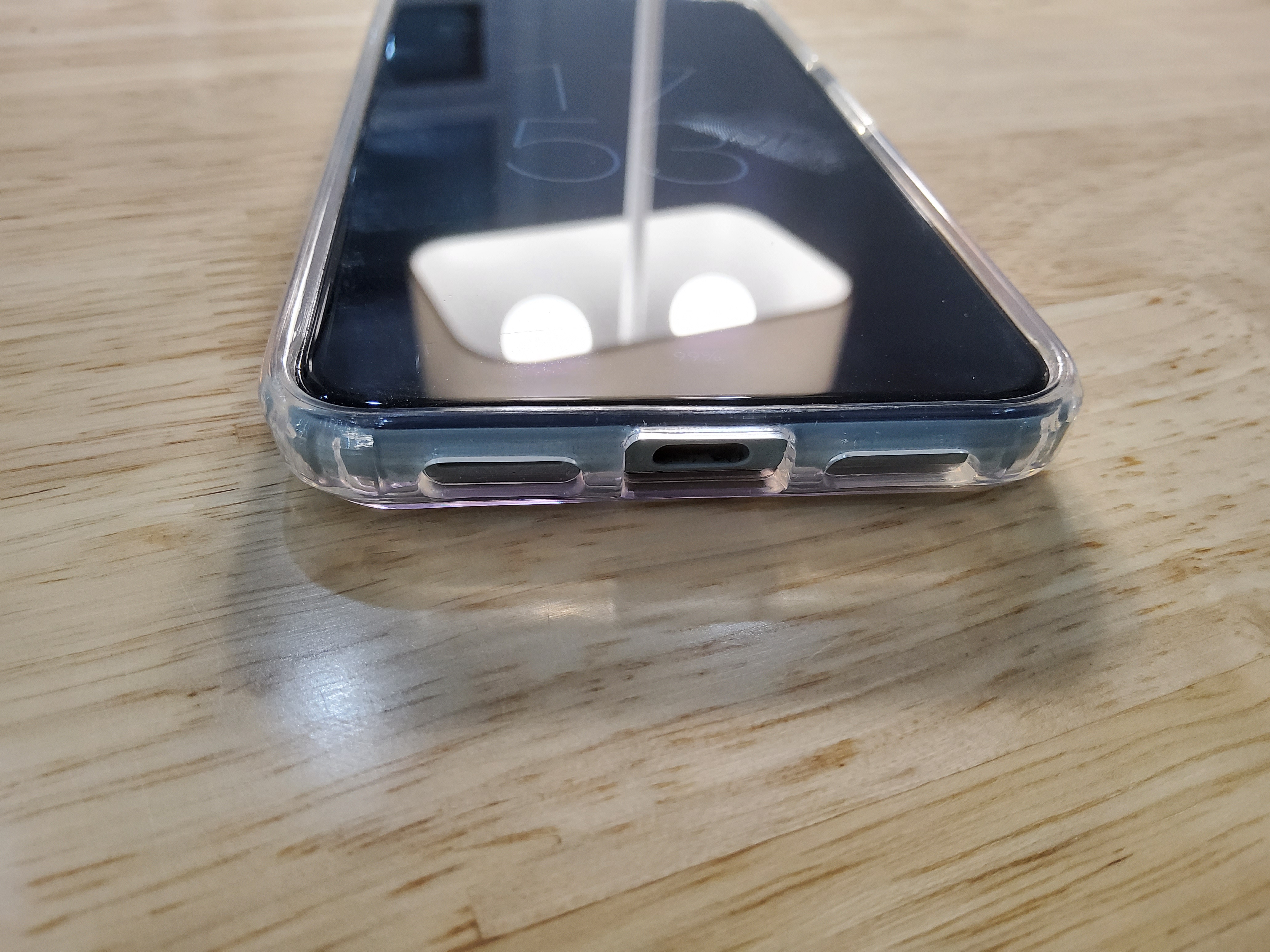 착용한 모습. 기존에 쓰던 TPU 케이스보다 베젤이 좀 더 두껍고 불투명해서 처음에 장착했을때 휴대폰이 묵직해진 느낌이 확 들었다. 무게까지 늘어나는 정도는 아니고 비주얼과 그립감이 뭉뚱해졌다는 뜻.
