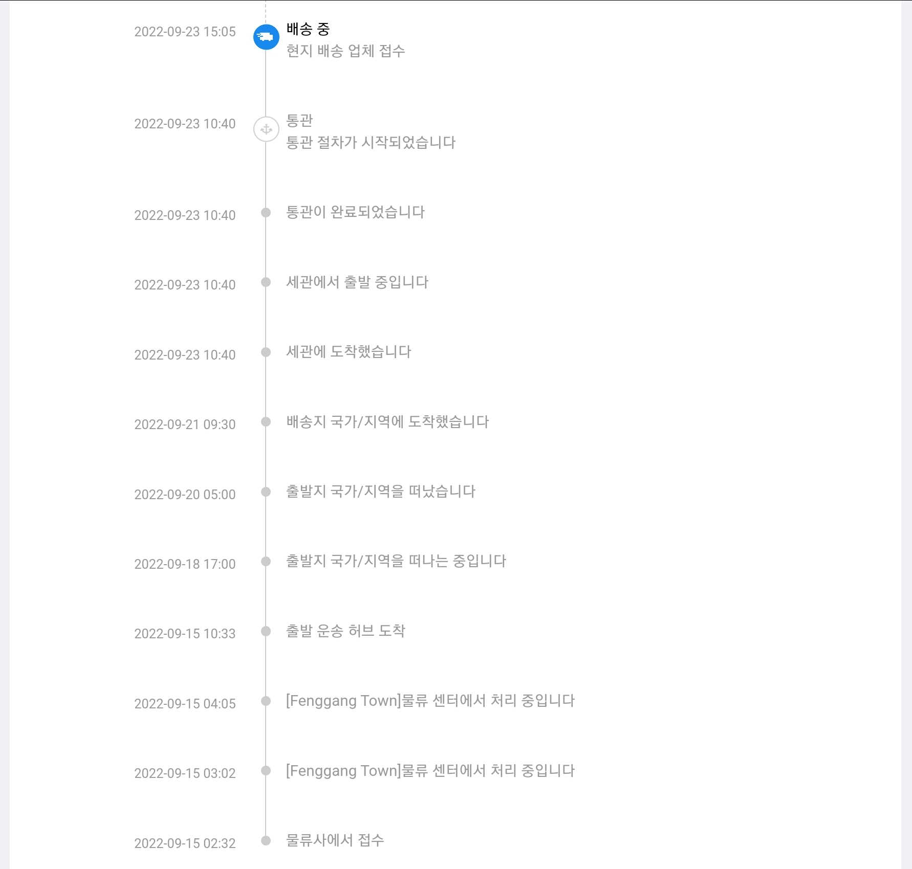 15일 중국에서 배송을 시작하고, 20일 중국을 떠나 다음날 한국에 도착하고, 23일 세관을 통과한 뒤로 한동안 소식이 없어 잃어버린건지 누락된건지 온갖 추측을 했으나, 어차피 당초에 10월 15일 도착 예정이라고 했으니 느긋하게 기다려보기로 했다.