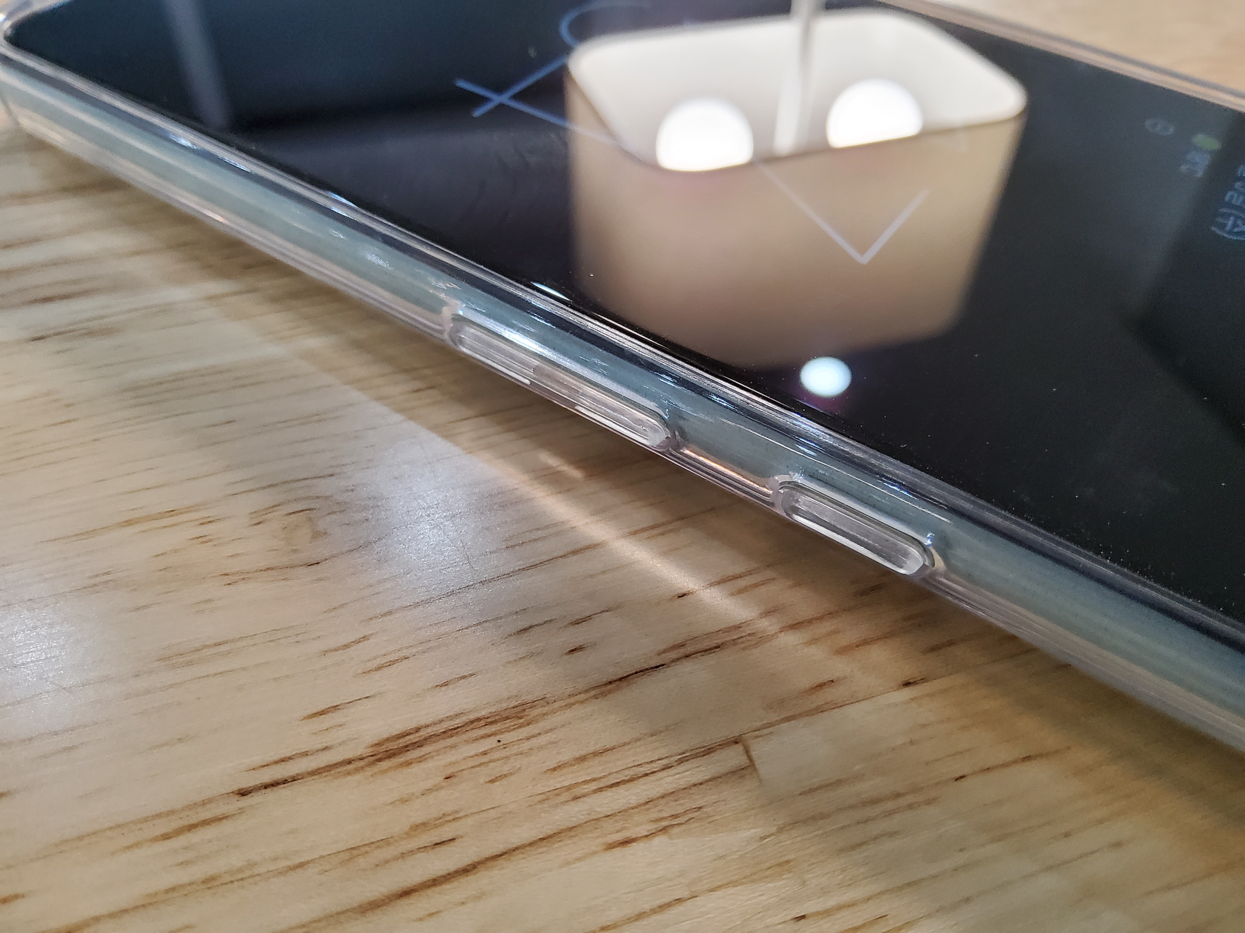 뒷면은 우려와 다르게 유막현상은 생기지 않았다. 카메라와 지문센서 구멍도 딱 맞게 잘 뚫려있고. TPU 케이스처럼 테두리와 뒷면이 매끄럽게 이어지지 않아 손에 착 맞는 느낌은 들지 않지만 그래도 쓸만하다.