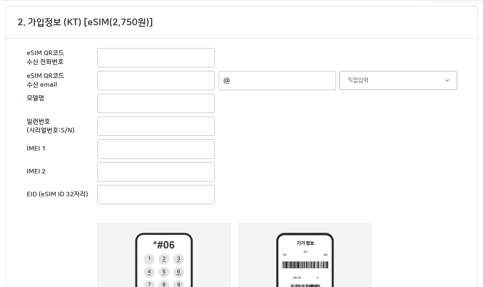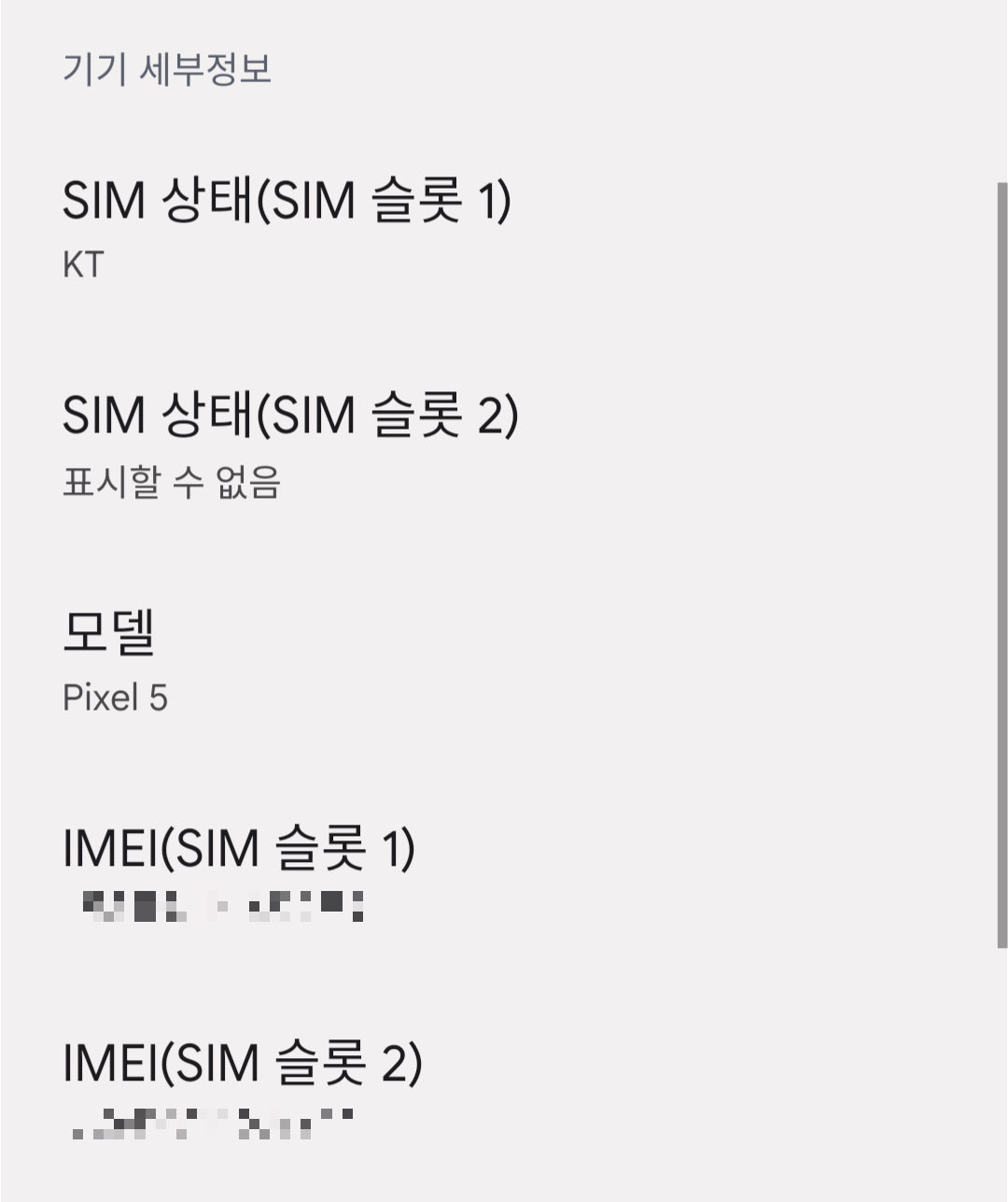 본인인증과 연락처, 이메일, 주소 등 정보 기입 후 다음 단계로 넘어오면 일련번호, IMEI, EID 등 휴대폰 정보를 입력해줘야 한다. 픽셀 기준 일련번호는 "설정 > 휴대전화 정보 > 모델"에서 찾아볼 수 있고, IMEI 역시 "설정 > 휴대전화 정보"에 있다. 아니면 둘 다 다이얼 패드에서 *#06#를 눌러 확인할 수 있다.