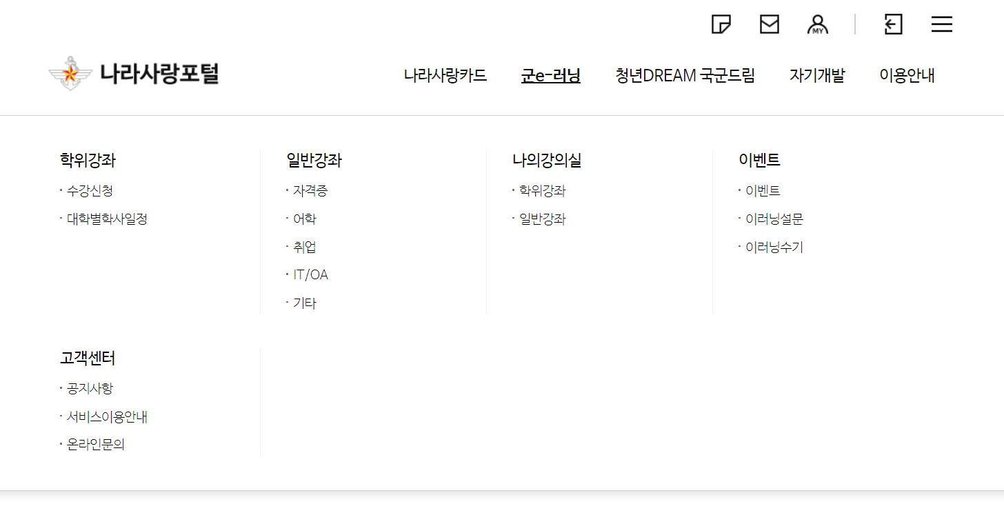 군e-러닝이란 군 복무자들에게 제공되는 온라인 강의 서비스로, 일반적으로는 군 휴학 중 학점 취득 용도로 쓰이지만 어학, 자격증 등 다양한 분야의 일반 무료강의도 제공한다.