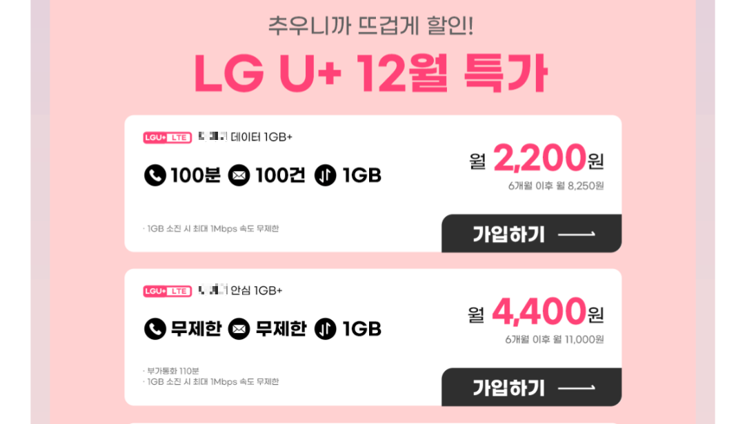 - 프로모션 요금제들은 월말이 되면 완판되는 경우가 있다. 즉 알뜰폰 요금제는 대부분 월초가 제일 저렴하다.