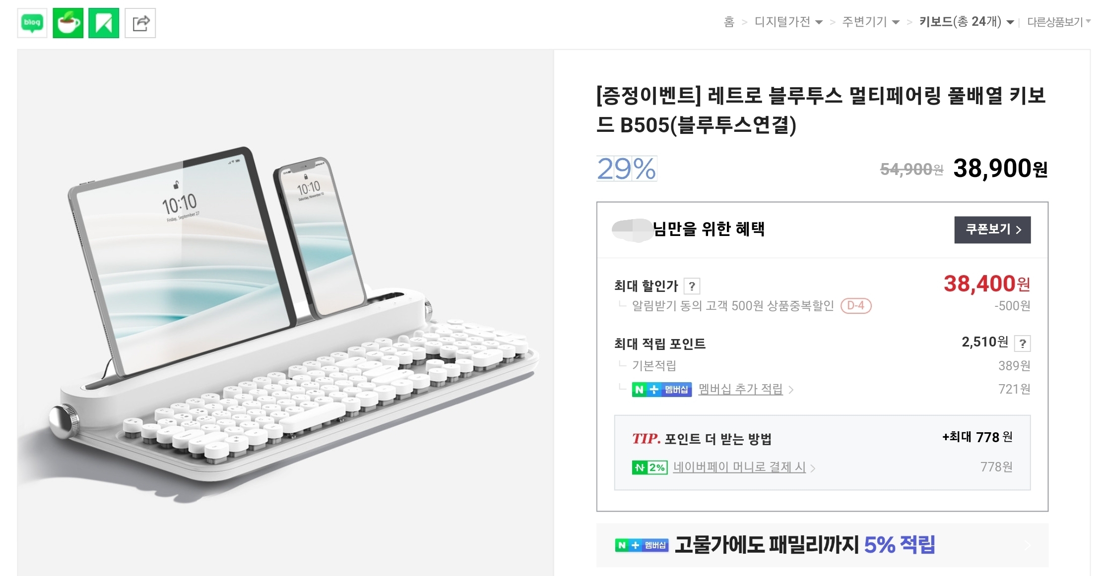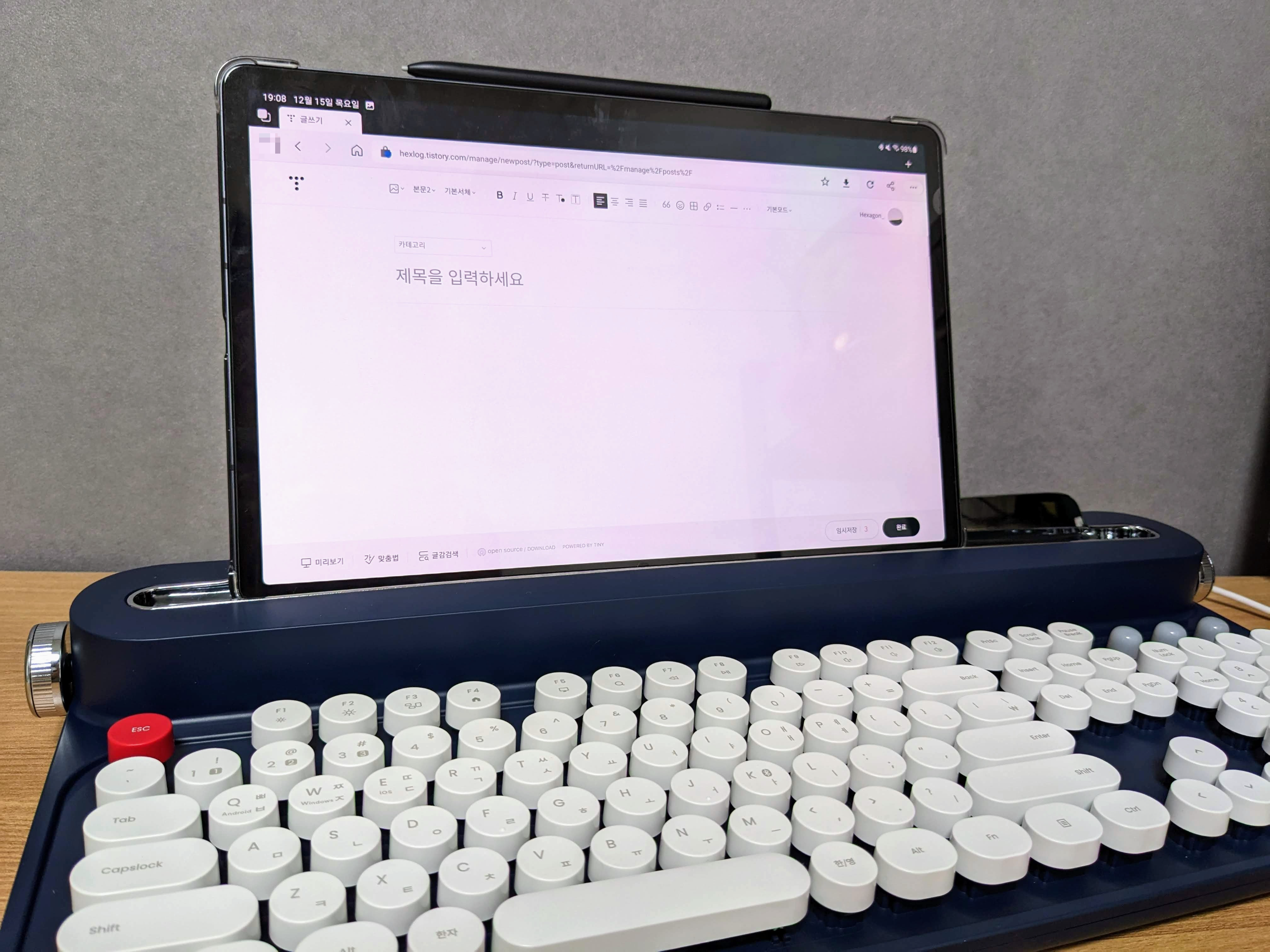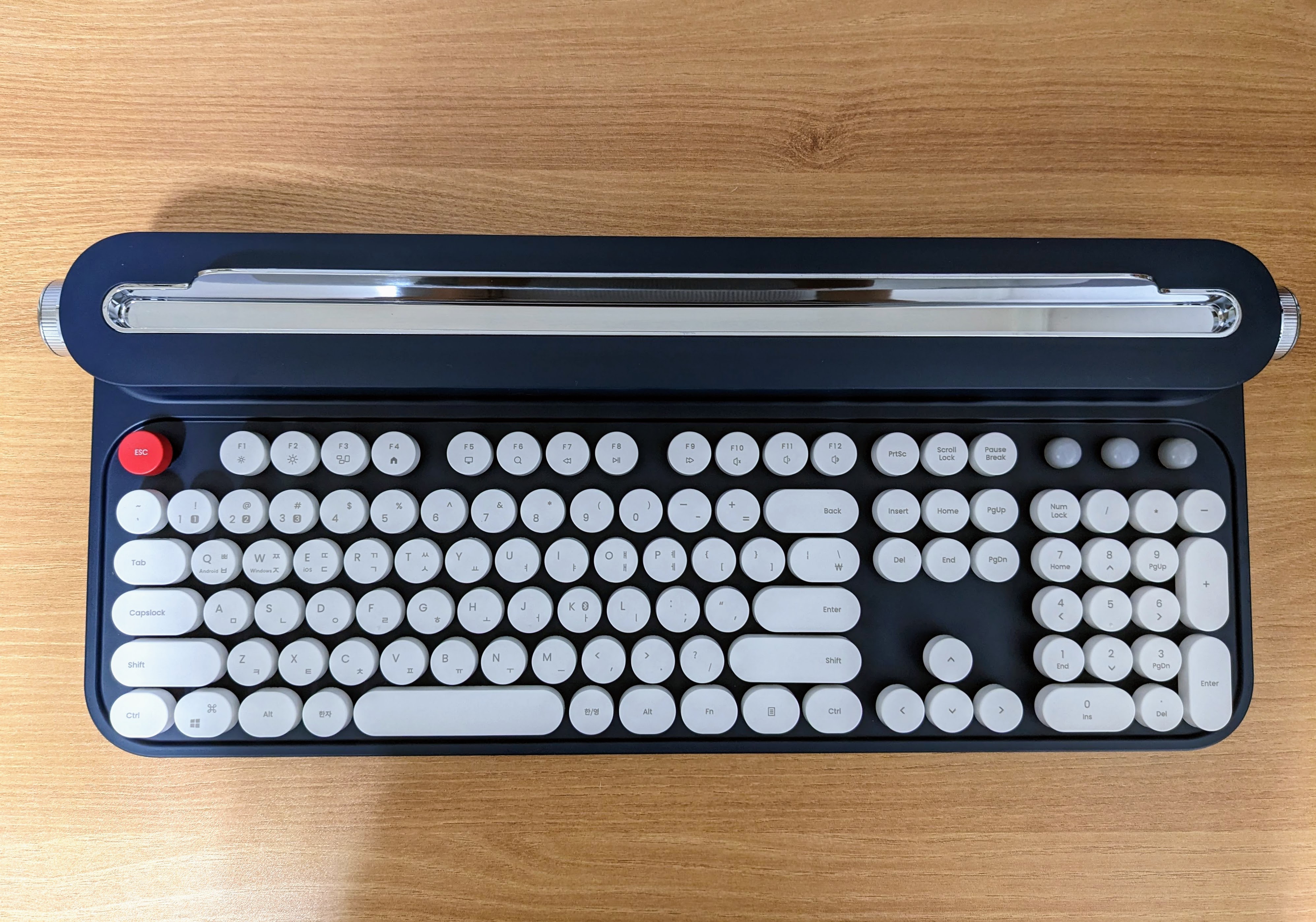 근무지에 있는 키보드는 전형적인 사무실 키보드라 타건감이 너무 구리고 갤럭시탭이랑 휴대폰에도 동시에 연결할 키보드가 필요했는데, 이왕 사는거 예쁜거로 사고 싶어서 엑토에서 출시한 레트로 블루투스 키보드를 구매했다.