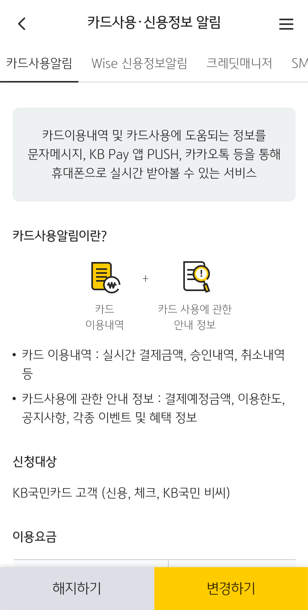 카드 사용 알림은 국민카드만 지원한다고 명시되어있고, 내역조회 기능은 엄연히 따지자면 KB Pay 내에서 사용한 내역들은 조회가 가능하지만, 실질적으로는 불가능한거나 마찬가지다. 이 부분 역시 거의 모든 카드사 내역 한번에 조회되고 국민/하나/비씨/롯데카드는 사용알림 수신까지 지원하는 토스의 승리.