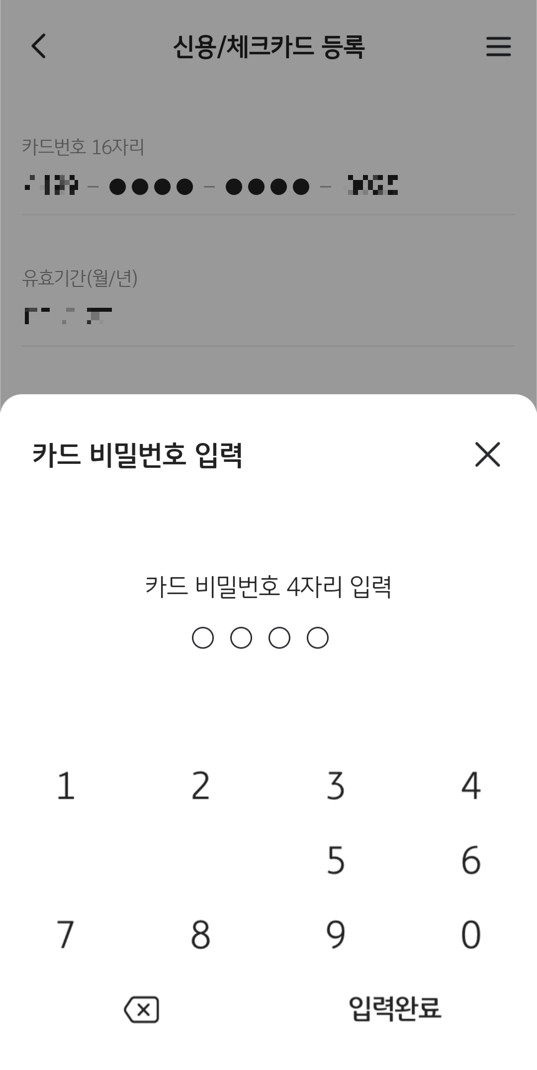 이렇게 등록이 완료되면 국민카드 앱 안에 신한카드 사진이 뜨는 굉장히 합성같은 장면이 나온다.