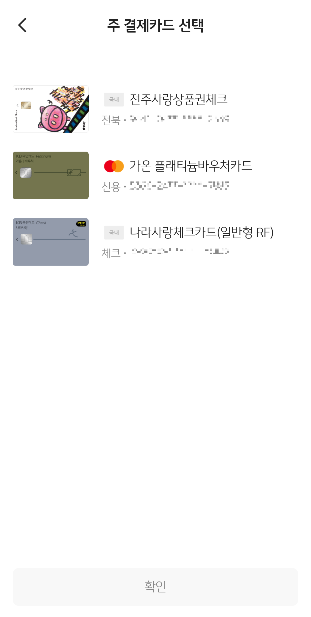 위에 나열한 3가지 단점에 비하면 미미한 수준이지만, 향후 오프라인 NFC결제가 활성화된다면 따로 앱 구동 없이 휴대폰을 결제 단말기에 갖다대면 자동으로 결제를 진행하는 기능 역시 많이 쓰일텐데, 이 역시 아직까지는 국민카드만 주 결제카드로 설정할 수 있다.