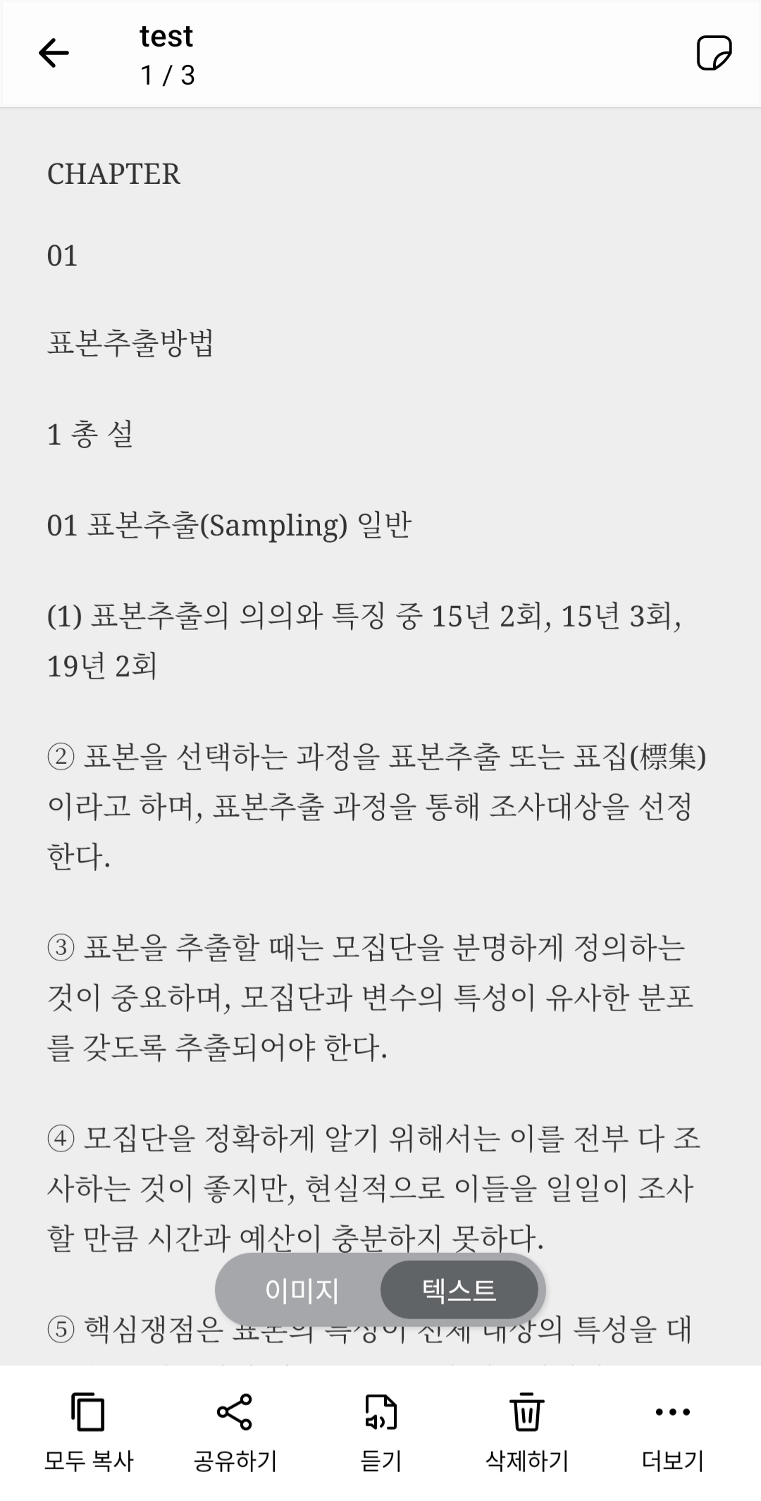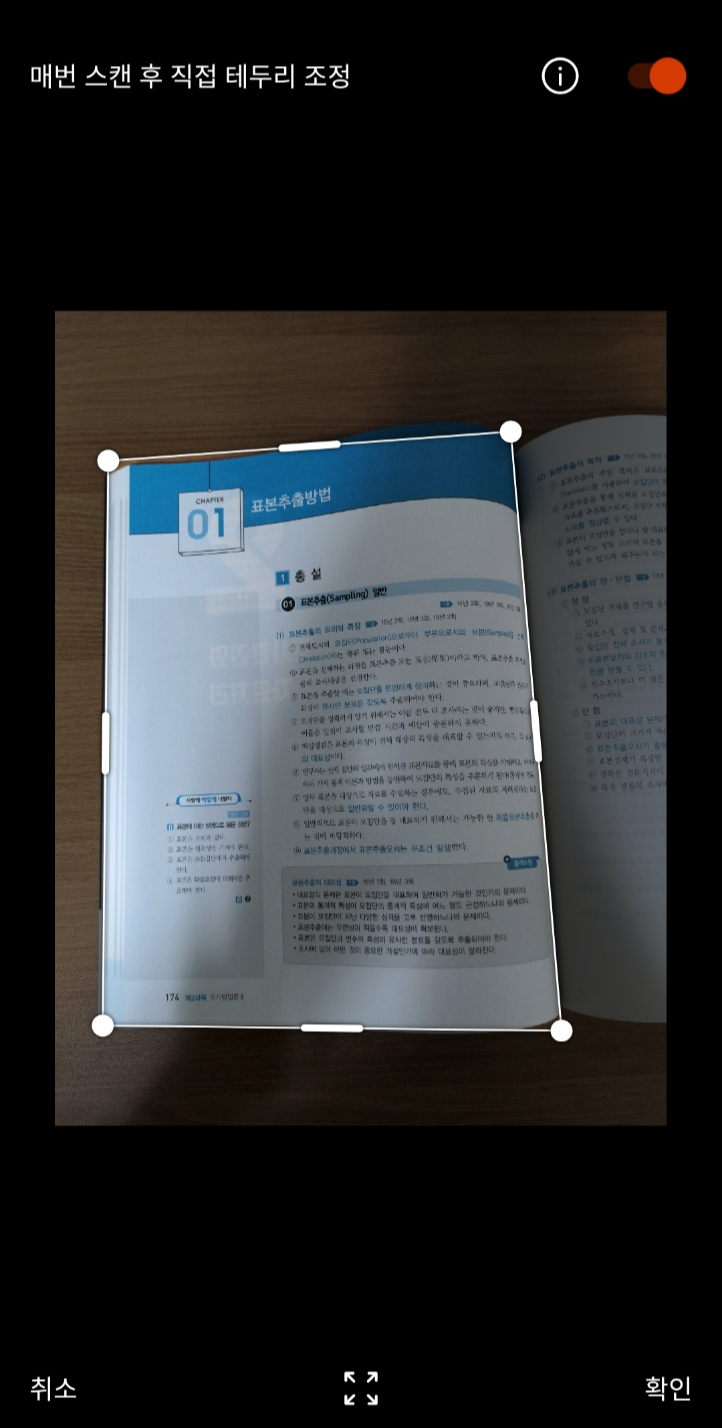 단순 스캔 뿐만 아니라 페이지 내 텍스트를 인식하는 기능도 있는데, 텍스트 배열이 복잡한 자격증 수험서임에도 거의 대부분 정확하게 인식하는 모습을 보여줬다 (심지어 한자까지!). 소설책처럼 텍스트 배치가 단순한 책이라면 아마 인식 효과가 더 좋을듯.