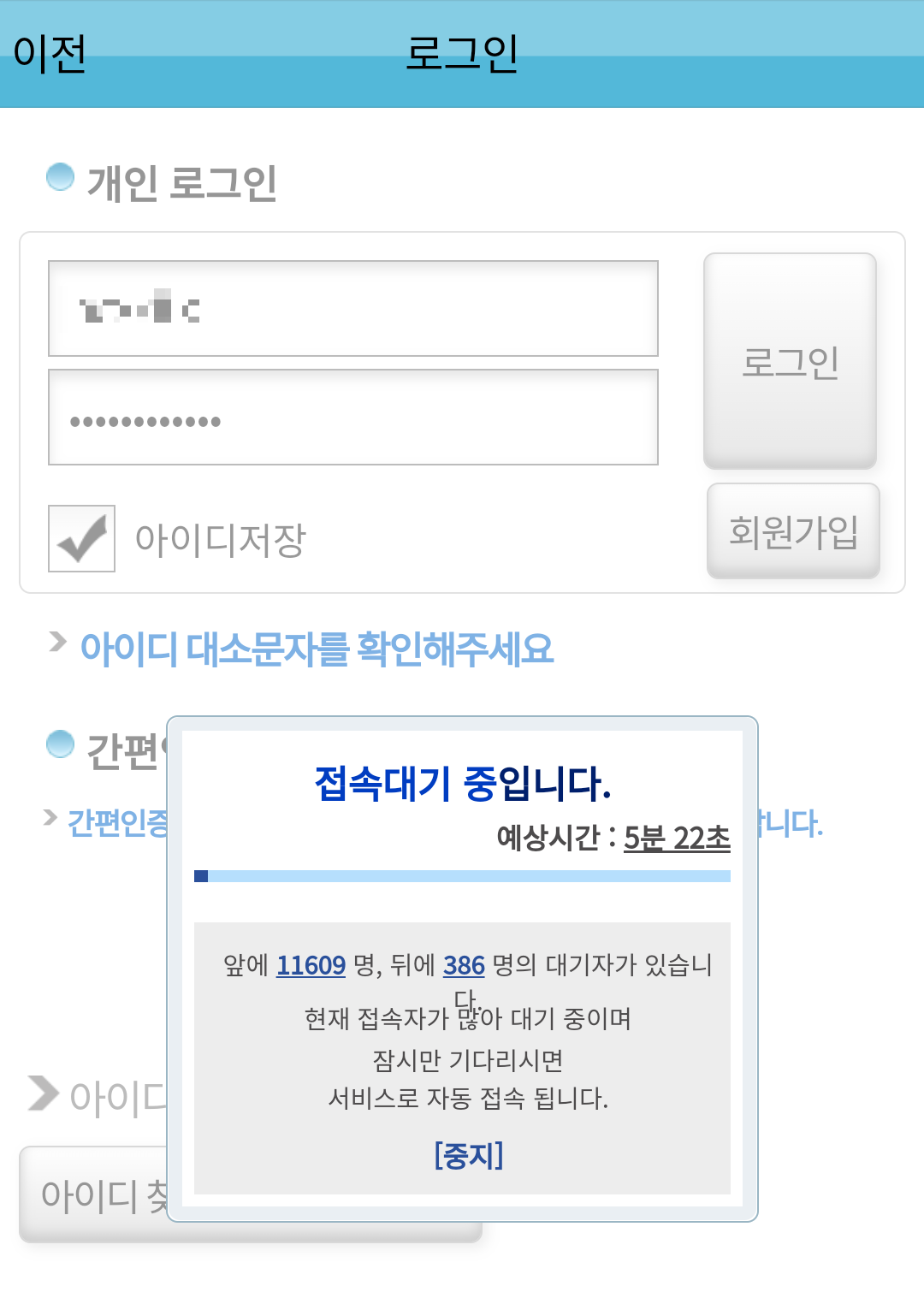 그리고 로그인 창 들어가는데부터 서버 대기열에 걸리기 때문에 로그인은 반드시 미리 해놓아야 한다. 이르면 이를수록 좋긴 하지만 너무 일찍 로그인하면 자동 로그아웃될 수도 있기 때문에 5~10분 정도만 미리 하면 된다.