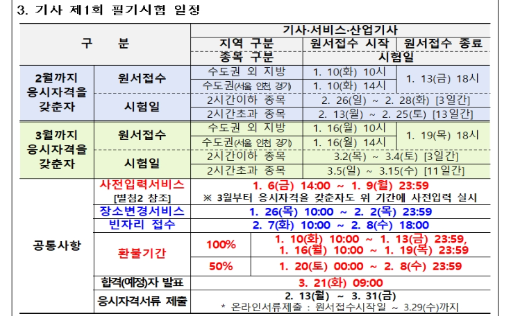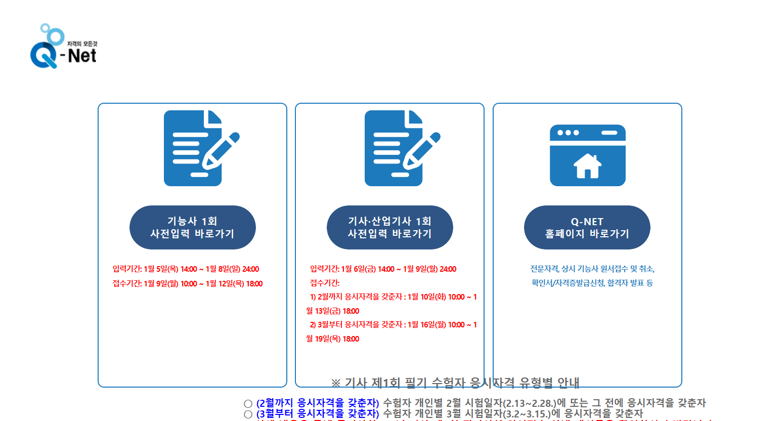 한정적인 시험 일정과 시험장에 엄청나게 많은 응시자가 몰리느라 시험 접수 당일 큐넷 홈페이지에는 콘서트 티켓팅 사이트 마냥 서버 대기열이 생길 정도로 원서접수 경쟁이 치열하니, 만반의 준비태세를 갖춰야만 접수에 성공할 수 있다.