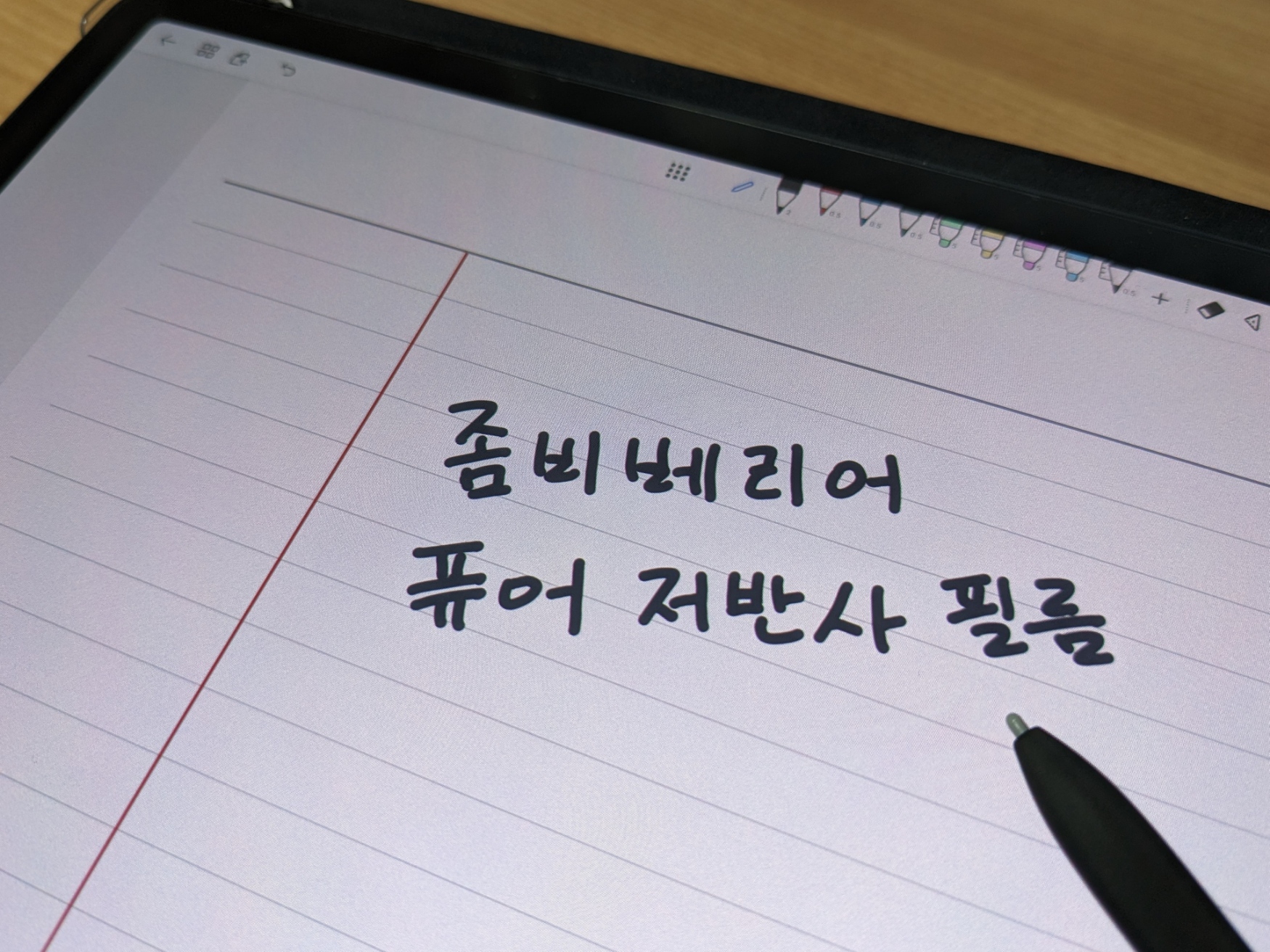 매우 만족스럽다. 갤탭을 자격증 시험 준비할때만 필기용으로 쓸거고 (그것도 모든 시험준비가 펜이 필요한게 아니고, 컴활 실기 준비할때는 기출문제지 띄워놓는 용도로만 써먹음) 그 외 대부분 시간에는 노트북 대용이나 영상용으로 사용할건데, 좀비베리어 퓨어 저반사 필름은 강화유리 필름 대비 필기감은 훨씬 상승한데 비해 화질 저하는 거의 없어서 내 사용 패턴과 딱 맞아떨어졌다.