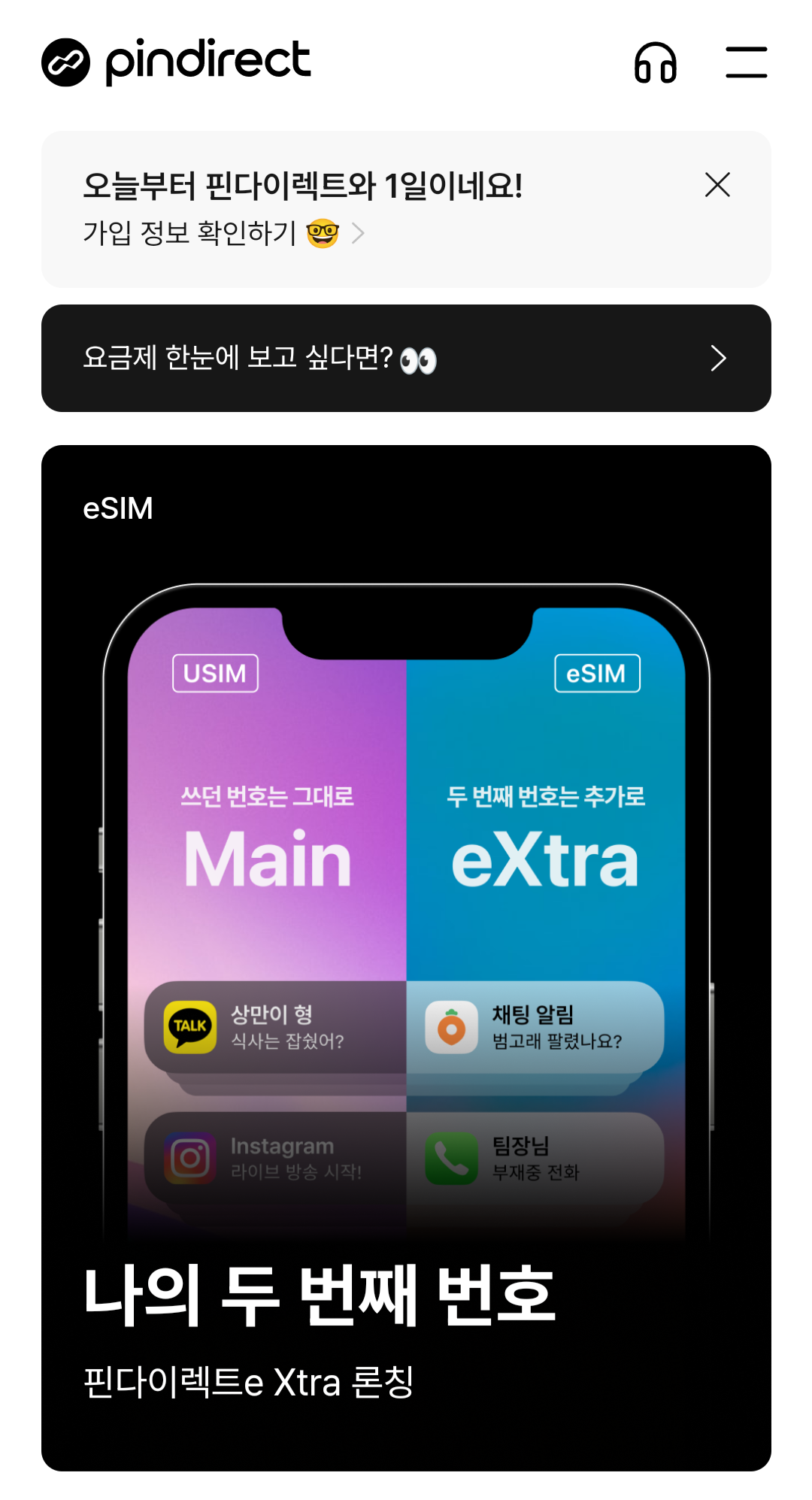 평소에 잘 쓰지도 않는 번호에 널리고 널린 0원 요금제들 냅두고 매달 550원 나가는게 좀 아까워서, 할인 기간은 5개월이지만 번호이동 3개월 제한 지나면 바로 0원 요금제로 갈아타기로 했는데, 마침 핀다이렉트에서 꽤나 파격적인 e심 요금제를 출시했다.
