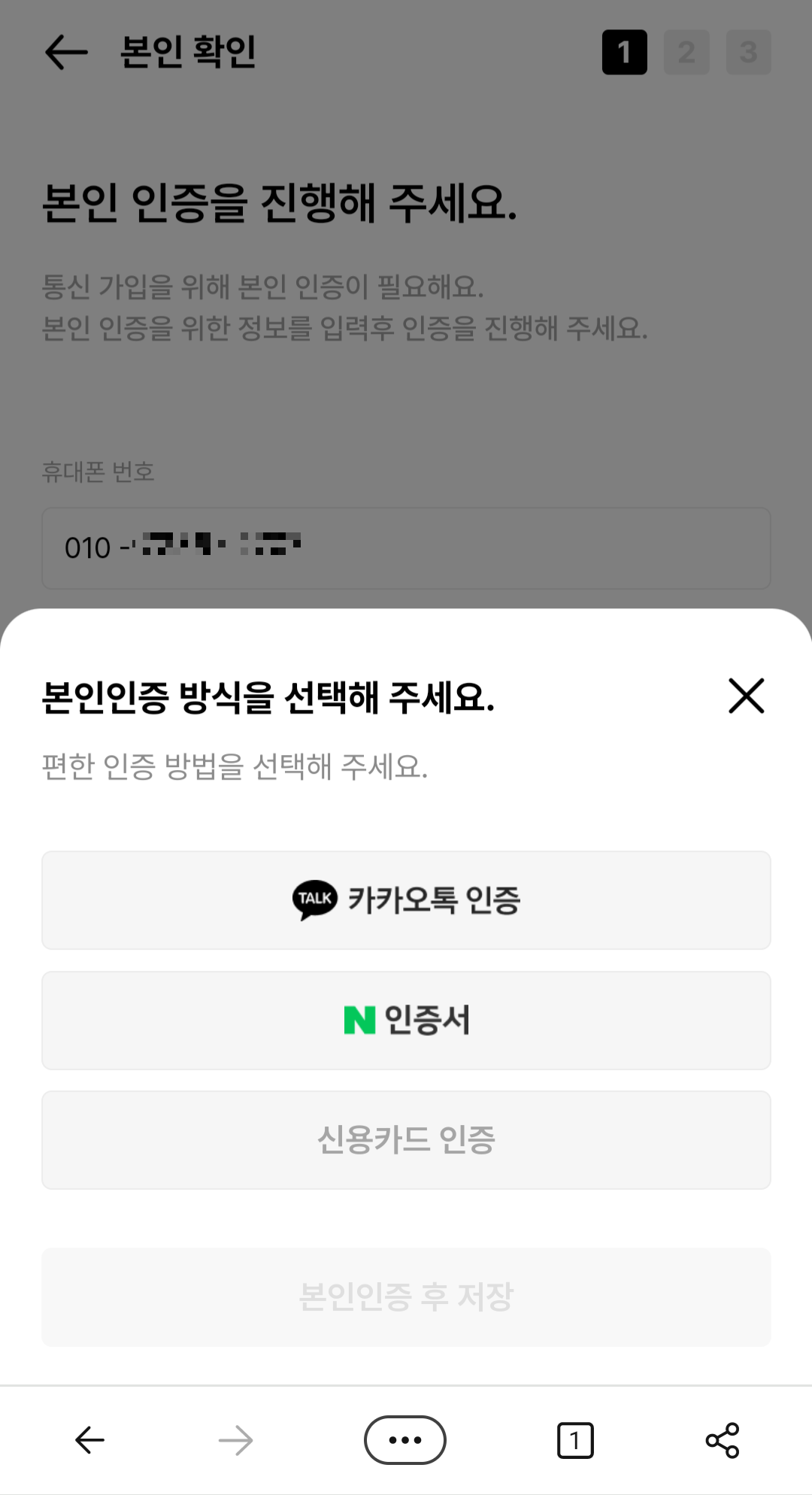 그리고 카카오톡 인증서는 카톡 가입 번호와 번호이동할 번호가 일치하지 않으면 인증이 안되므로, 네이버 인증서나 신용카드 인증을 사용해야한다.