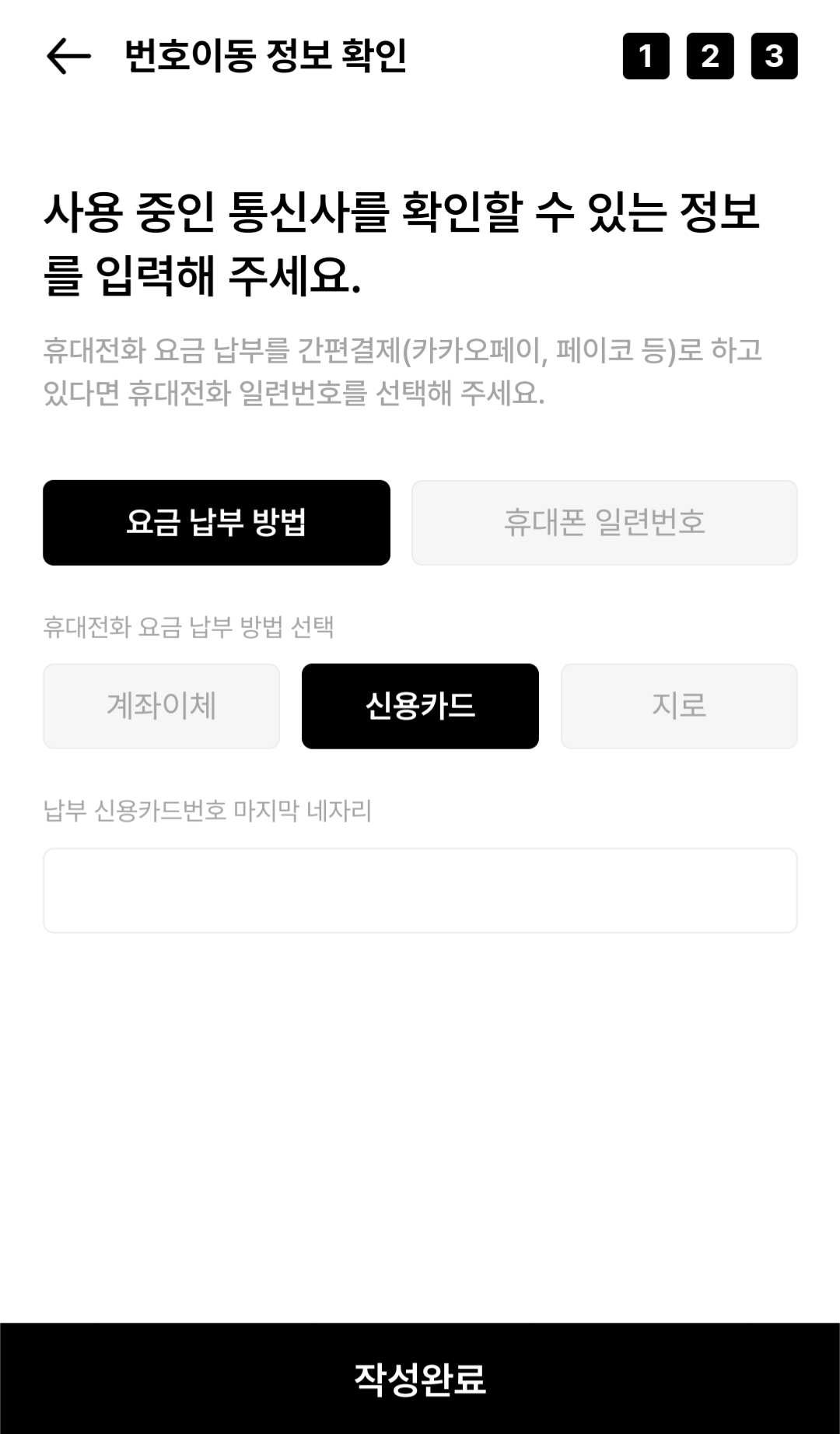 그 다음 요금 납부 방법, 주소, 전 통신사 정보 입력 단계들은 여느 통신사들과 비슷했다.