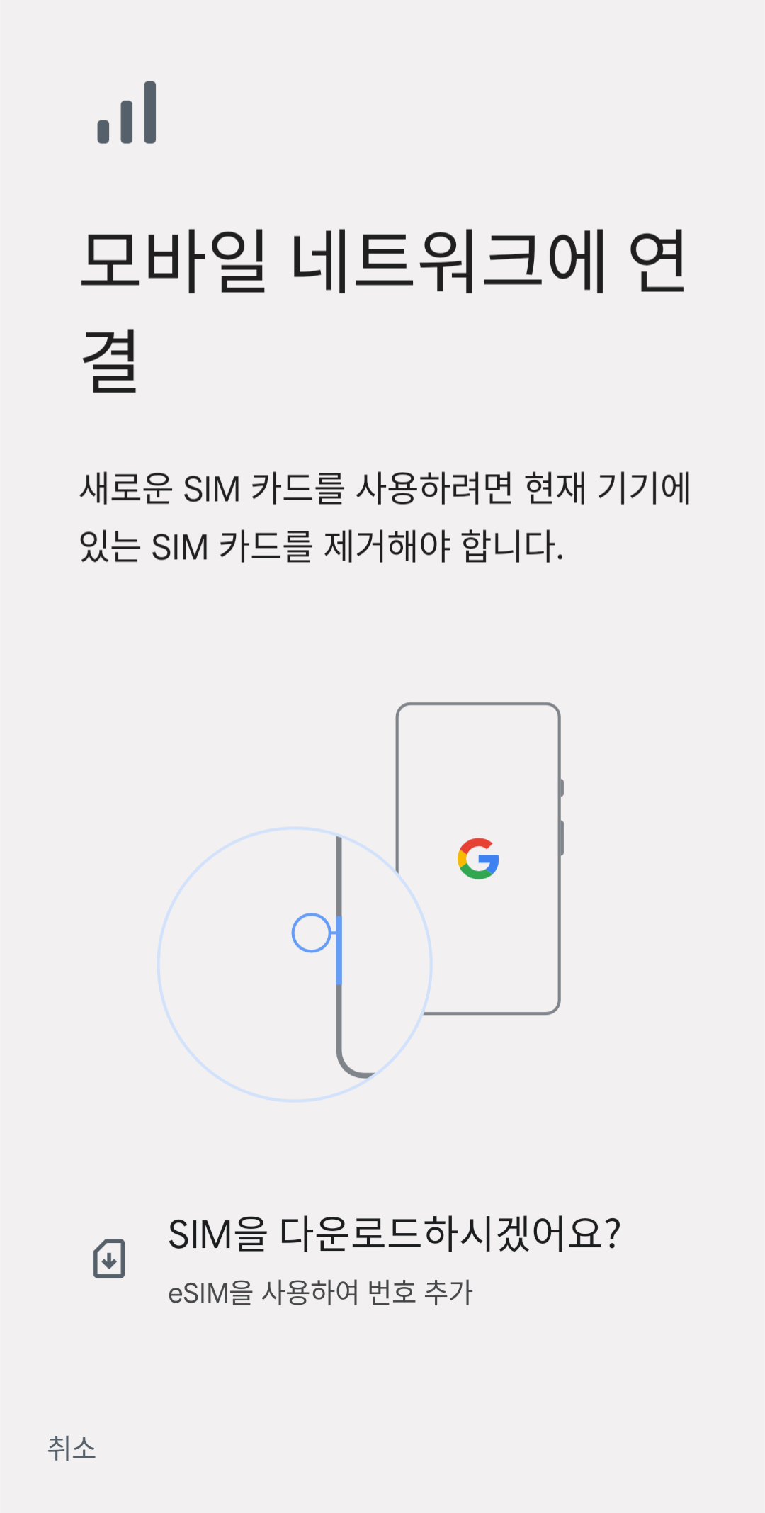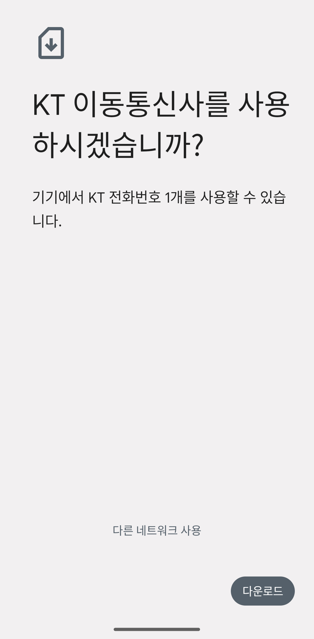 처음에는 "기존 통신사 정지된 후 10분 뒤 사용해주시면 되며"를 "10분 뒤에 기존 통신사가 정지되며"로 잘못 봐서 신호가 끊기자마자 e심 추가를 시도했더니 계속 안된다고 나와서 처음에는 설마 핀다이렉트도 외산폰을 지원하지 않는건가 당황했는데, 몇 차례 시도를 더 하니 정상적이게 유심 다운로드 화면이 나왔다.