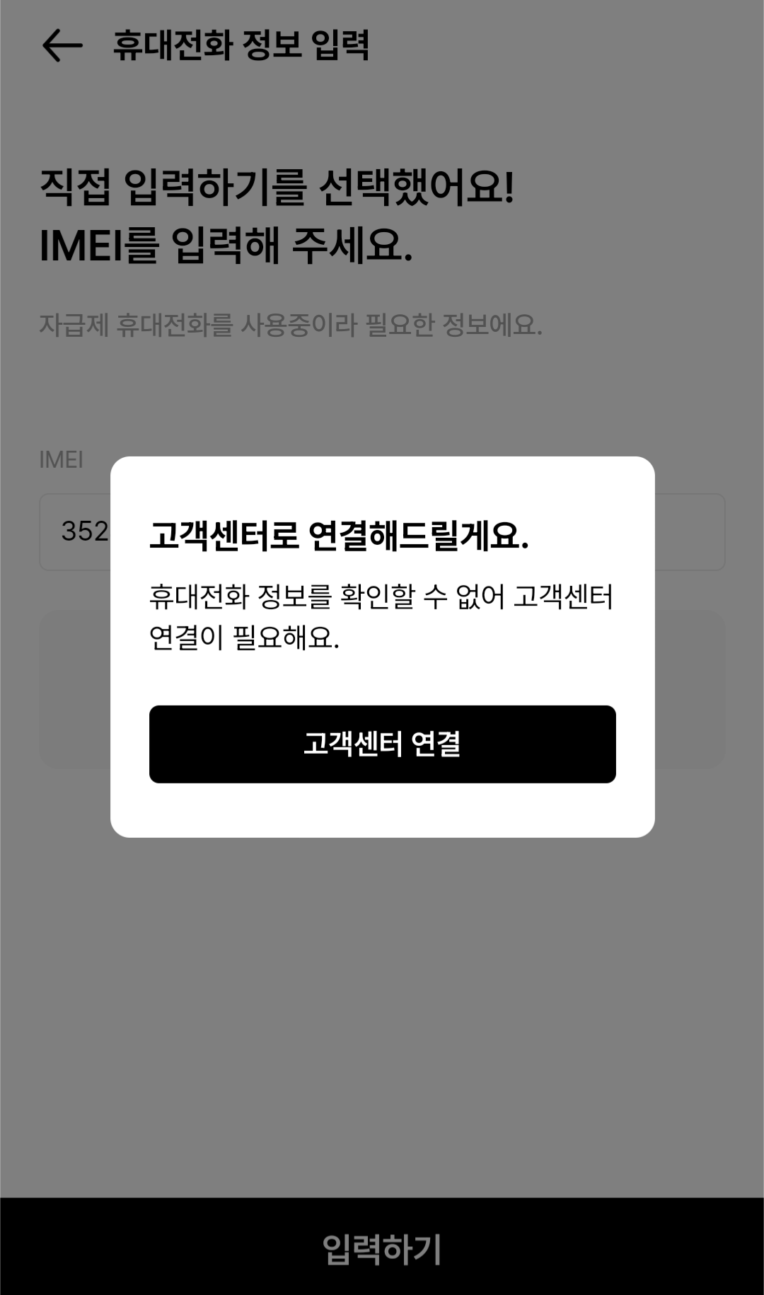 음... 역시 외산폰이라 전산에 뭐가 등록이 안된 모양이다. 고객센터에 연락하란다.