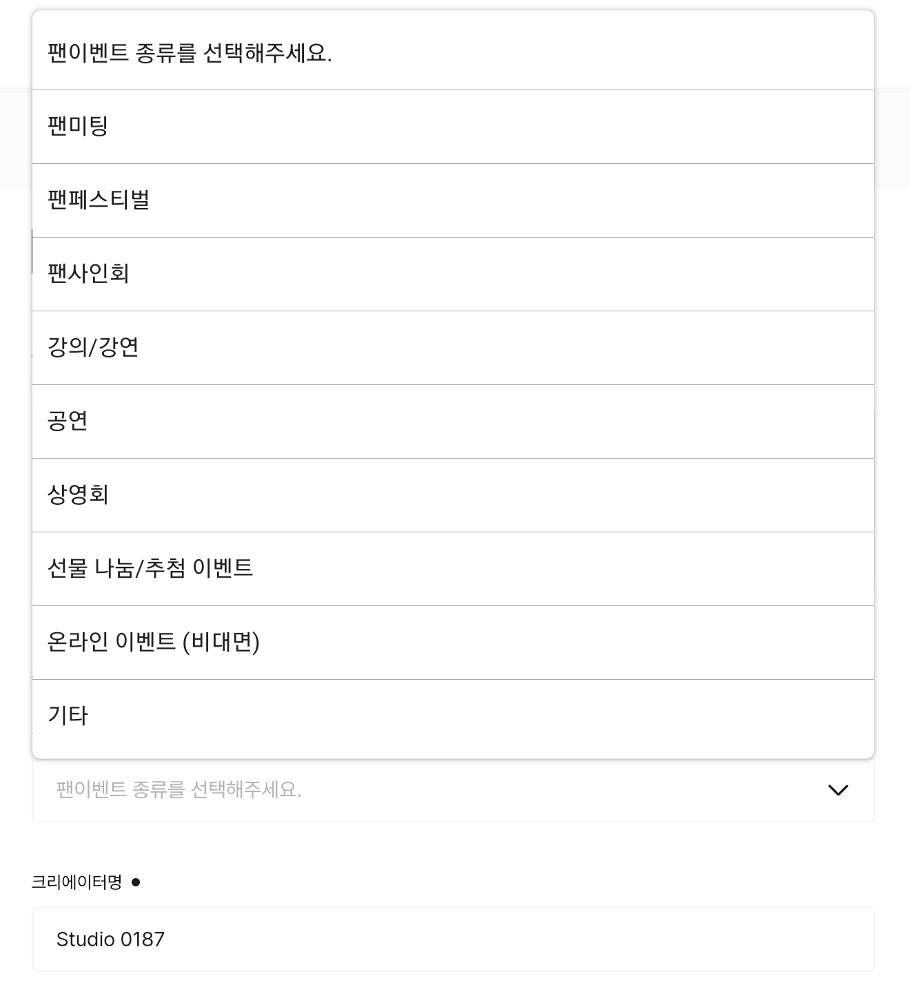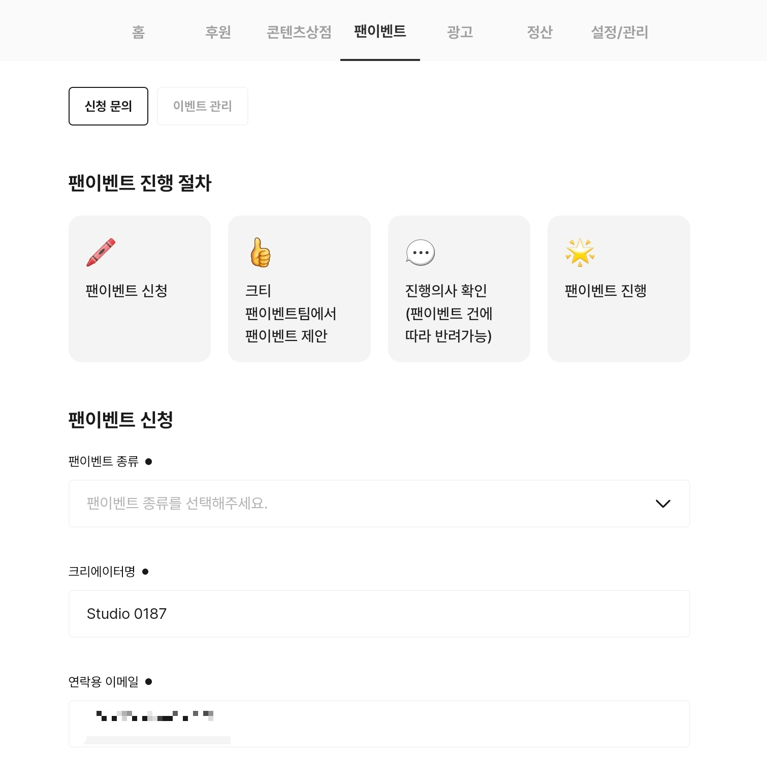 크티는 단순히 "디지털 콘텐츠 판매 플랫폼"에 국한되지 않고 "크리에이터의 창작 활동 홈페이지"를 포지션으로 삼고 있기 때문에 콘텐츠 상점 외에 팬이벤트 신청도 지원한다. 팬미팅/사인회/공연/비대면 이벤트 등 다양한 형식을 지원하는데, 인플루언서가 아닌 나는 딱히 쓸 일이 없는 기능이긴 하다.