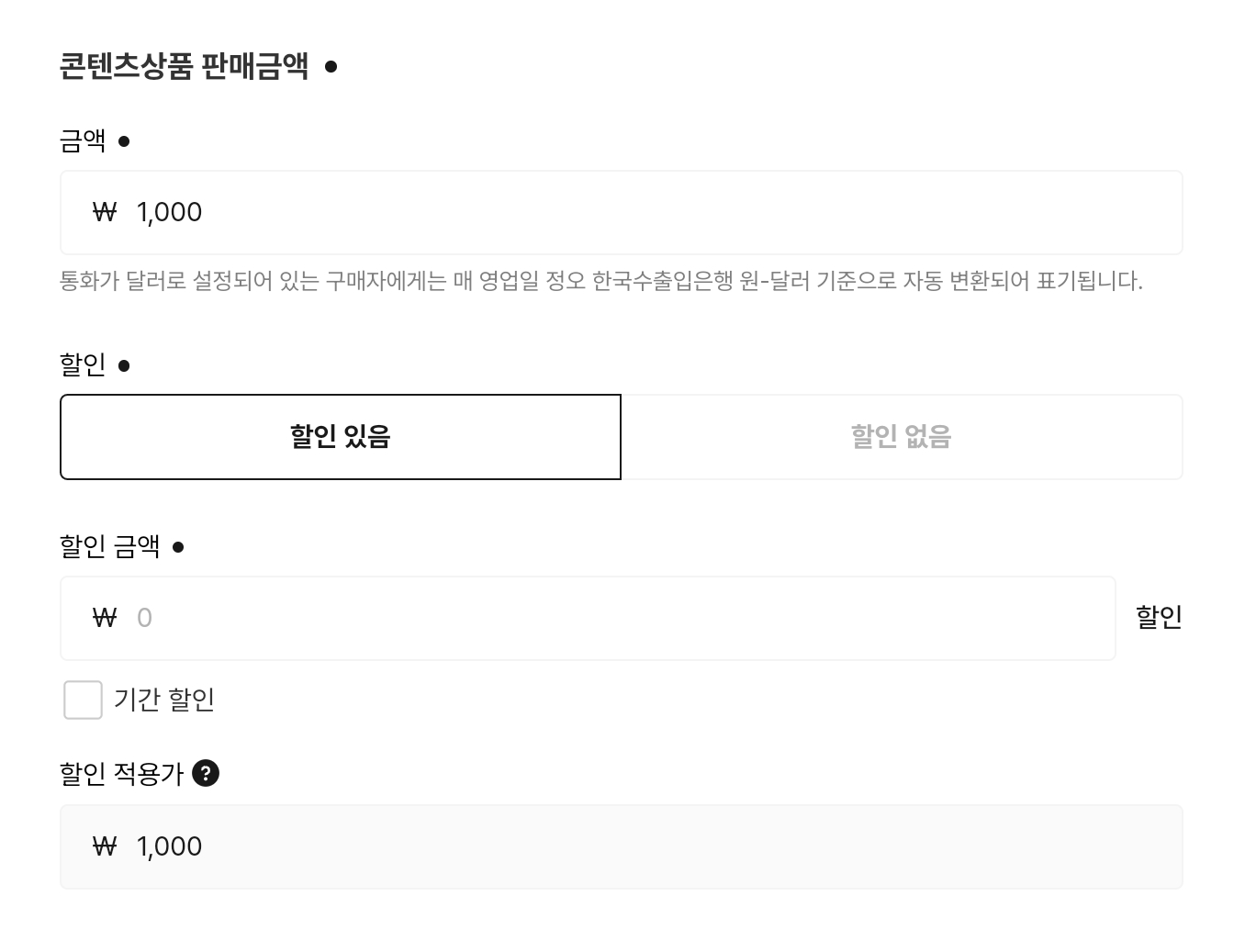 크티는 상품 가격의 통화를 원화로만 설정할 수 있으며, 구매자가 통화를 달러로 설정했다면 실시간 환율로 자동 변환되어 표기되며 원화 수익과 별도로 정산된다고 한다.