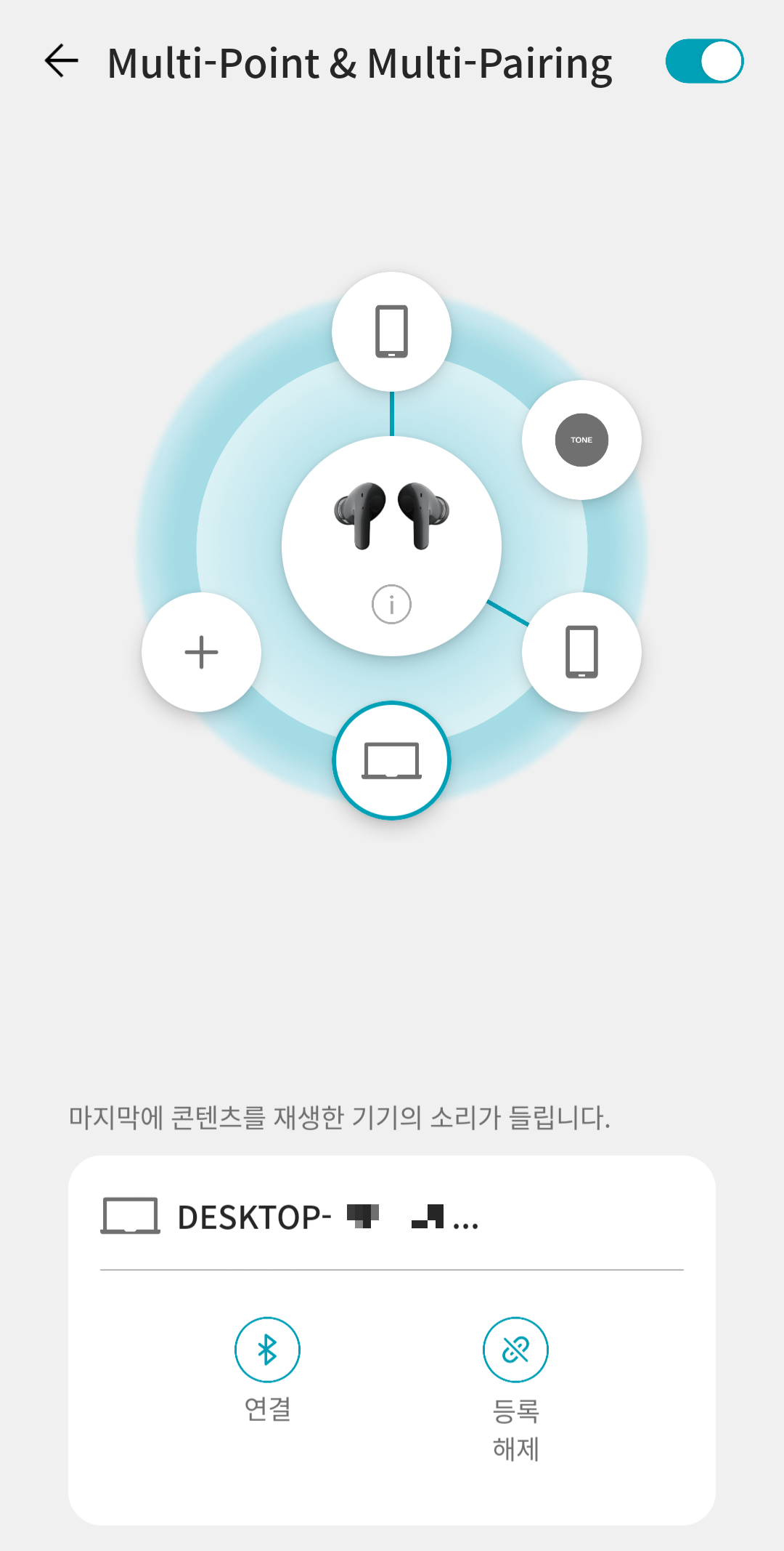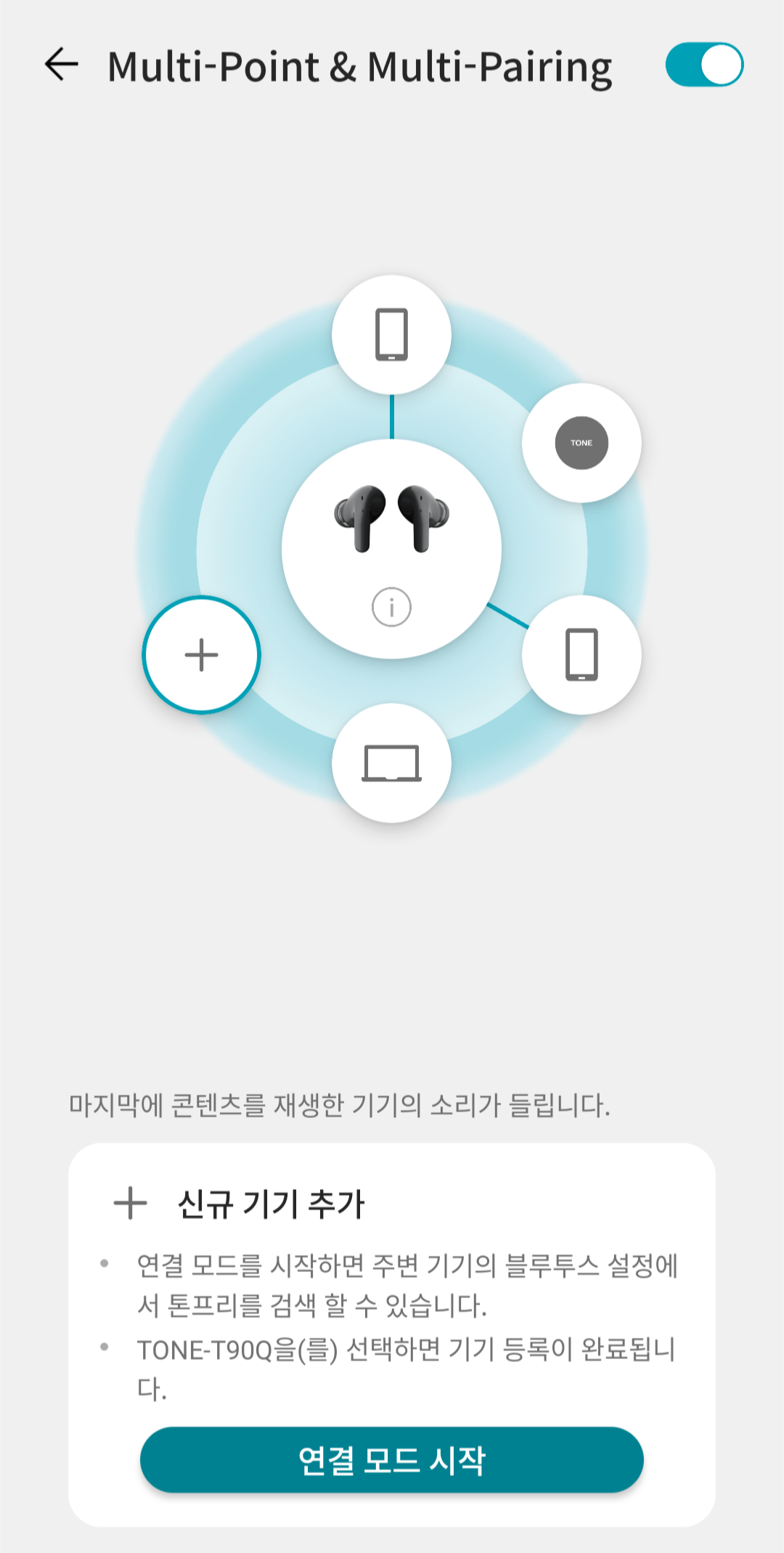 버즈 대신 톤프리를 택하게 된 결정적인 이유인 멀티포인트 기능. (비록 내가 원하는 기능은 멀티페어링에서도 지원한다는 사실을 뒤늦게 깨달았지만, 어차피 할인 낭낭하게 받아서 산건데 굳이 이것때문에 환불하고 버즈를 사서 몇만원 아낄 필요가 있을까...? 싶어서 그냥 쓰기로.)