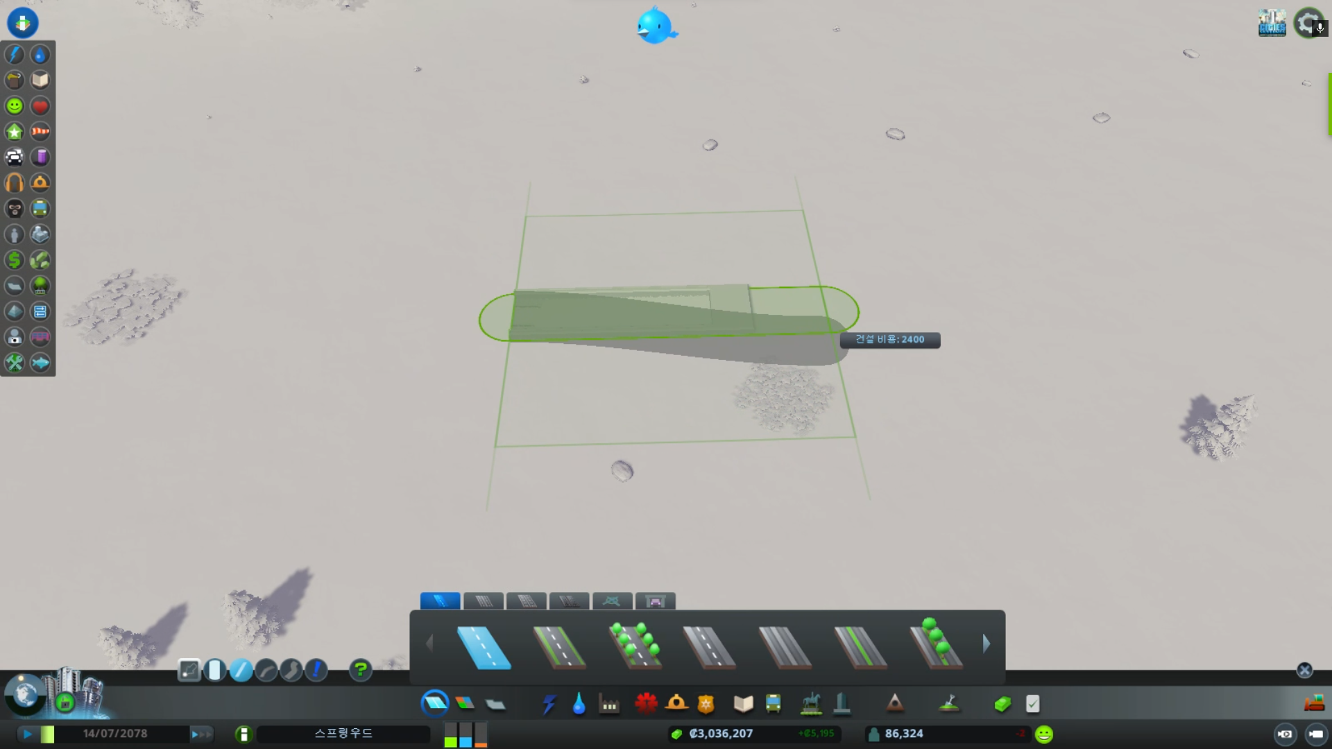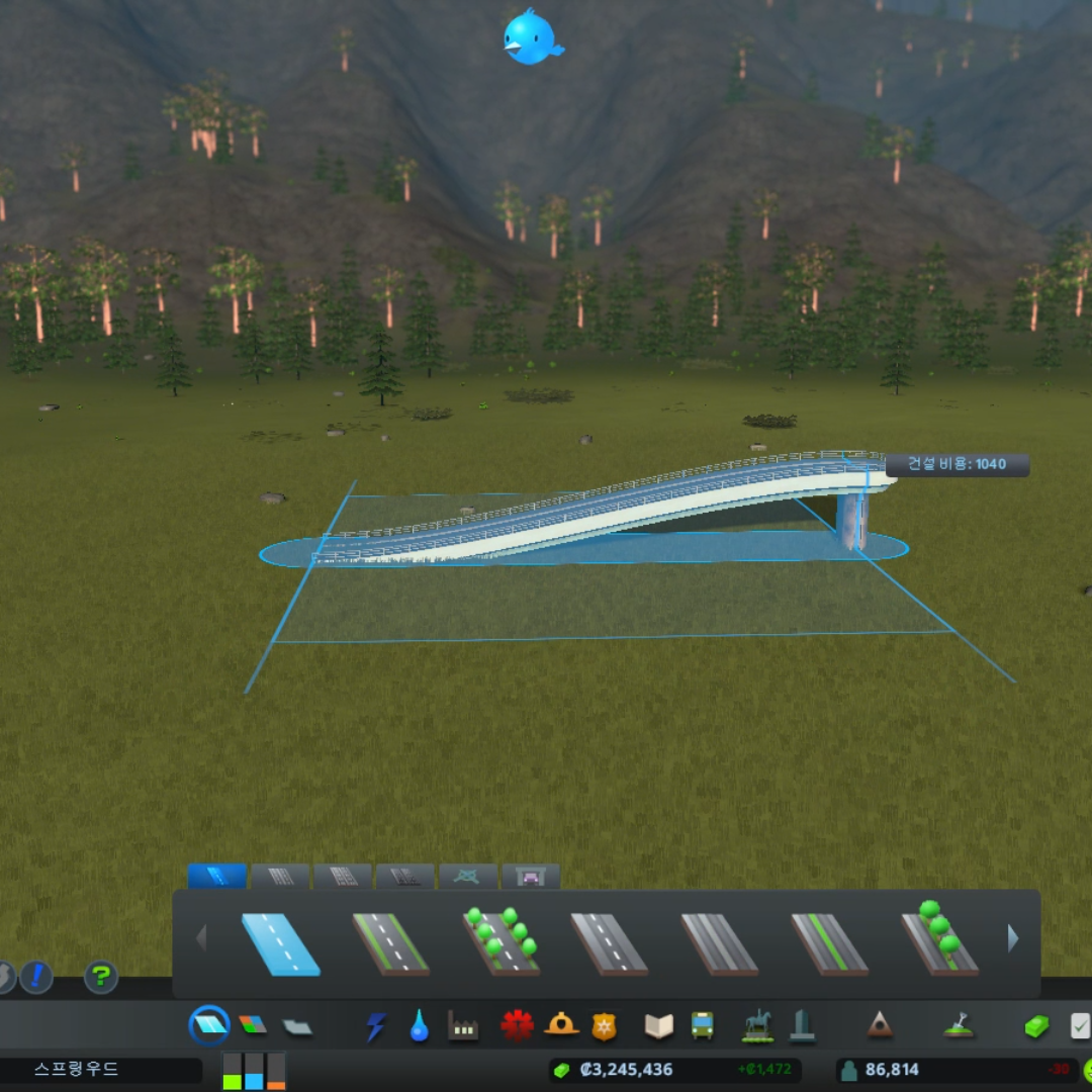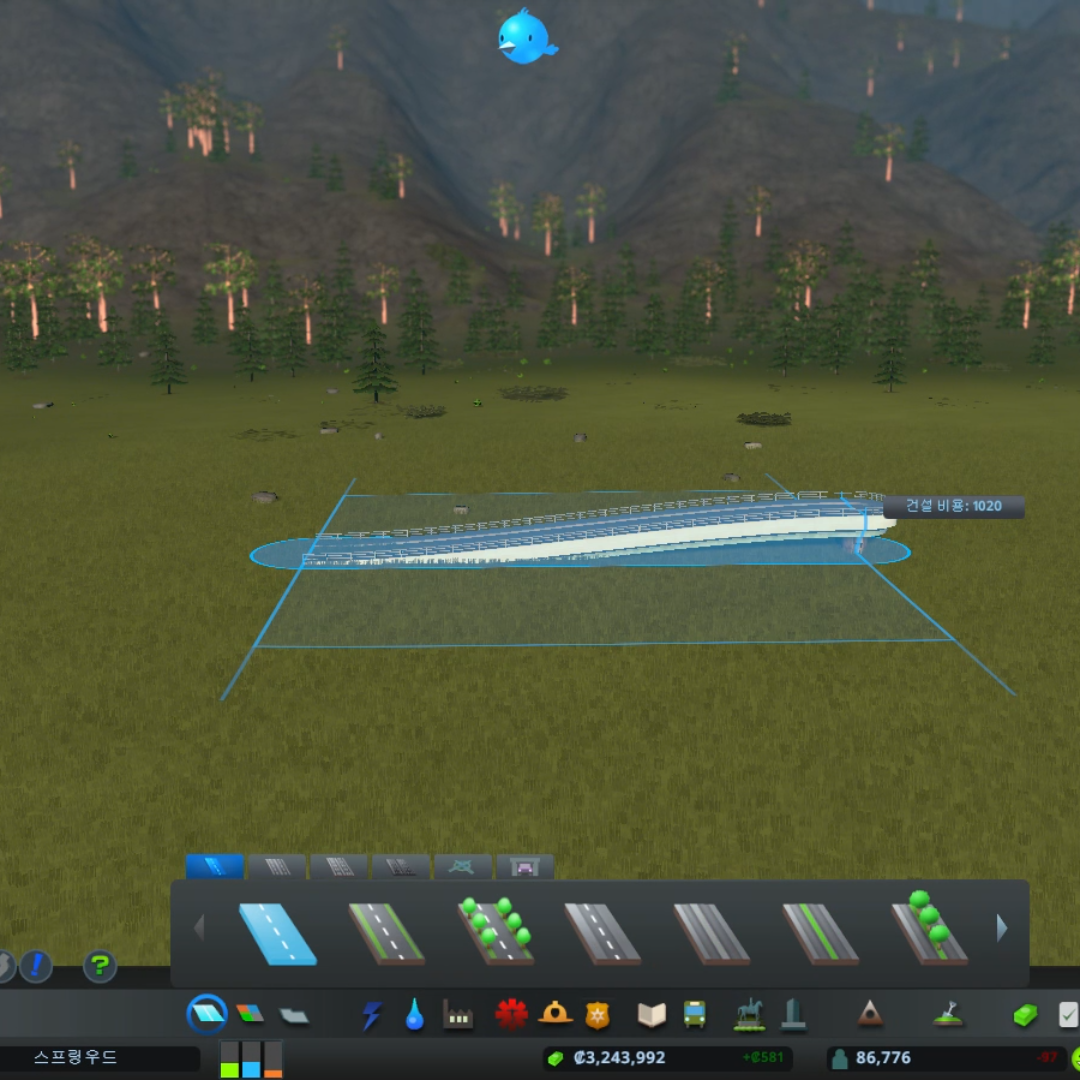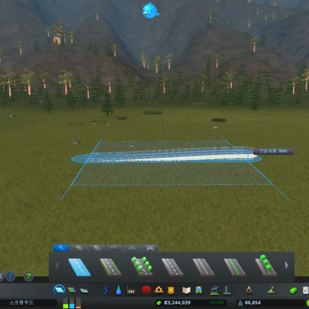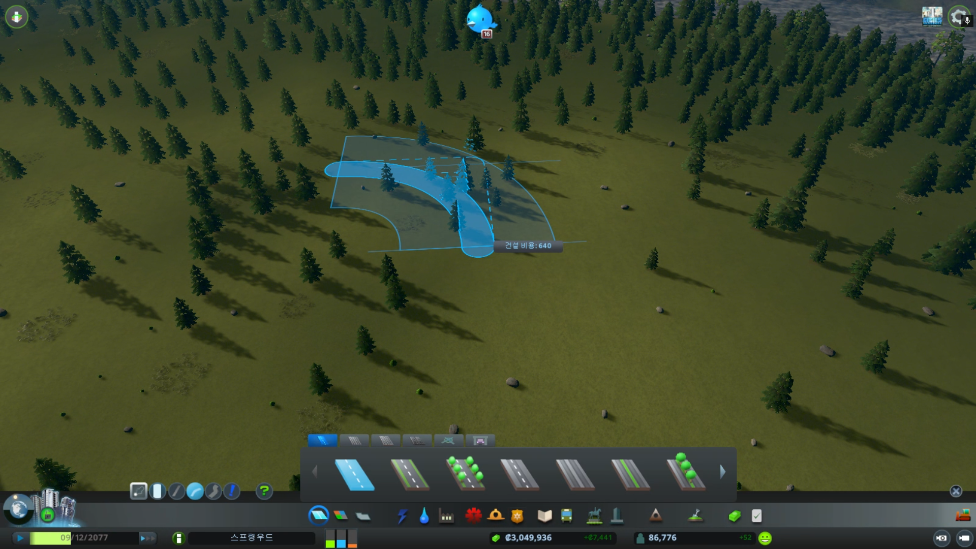 만약 "격자" 옵션이 켜져있다면 위 사진처럼 도로가 자동으로 격자에 딱딱 맞춰서 지어지지만, 끈다면 격자와 상관 없이 자유롭게 이동이 가능하다.