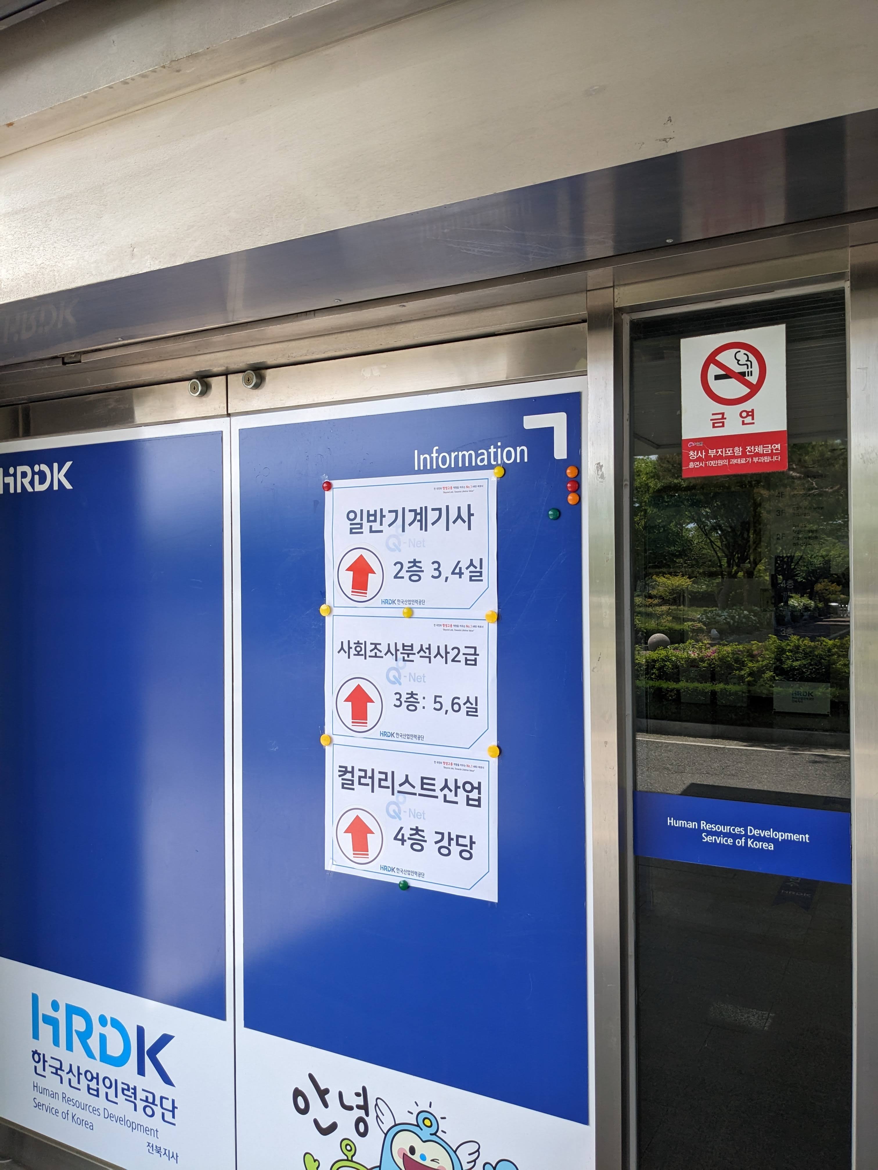 창조관 1층 정문 입구 기둥 중 사람들이 제일 많이 몰려있는곳에 붙어있는 시험장소 배정표를 보고 시험장 번호를 확인하고 들어가면 된다. 실내에 대기실은 따로 없지만 시험장 안에 앉아서 기다려도 되니 일찍 도착했으면 미리 들어가있는걸 추천한다.